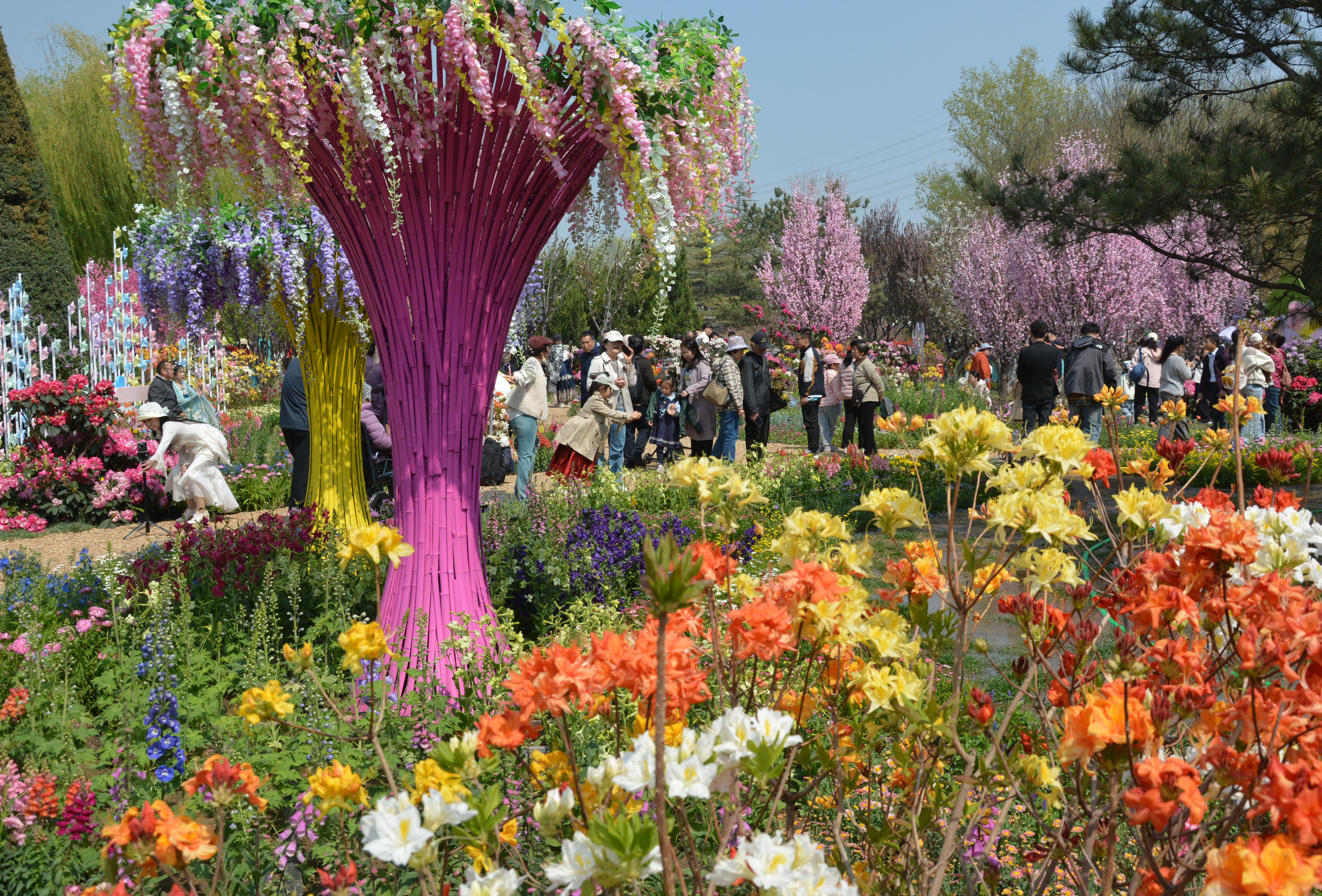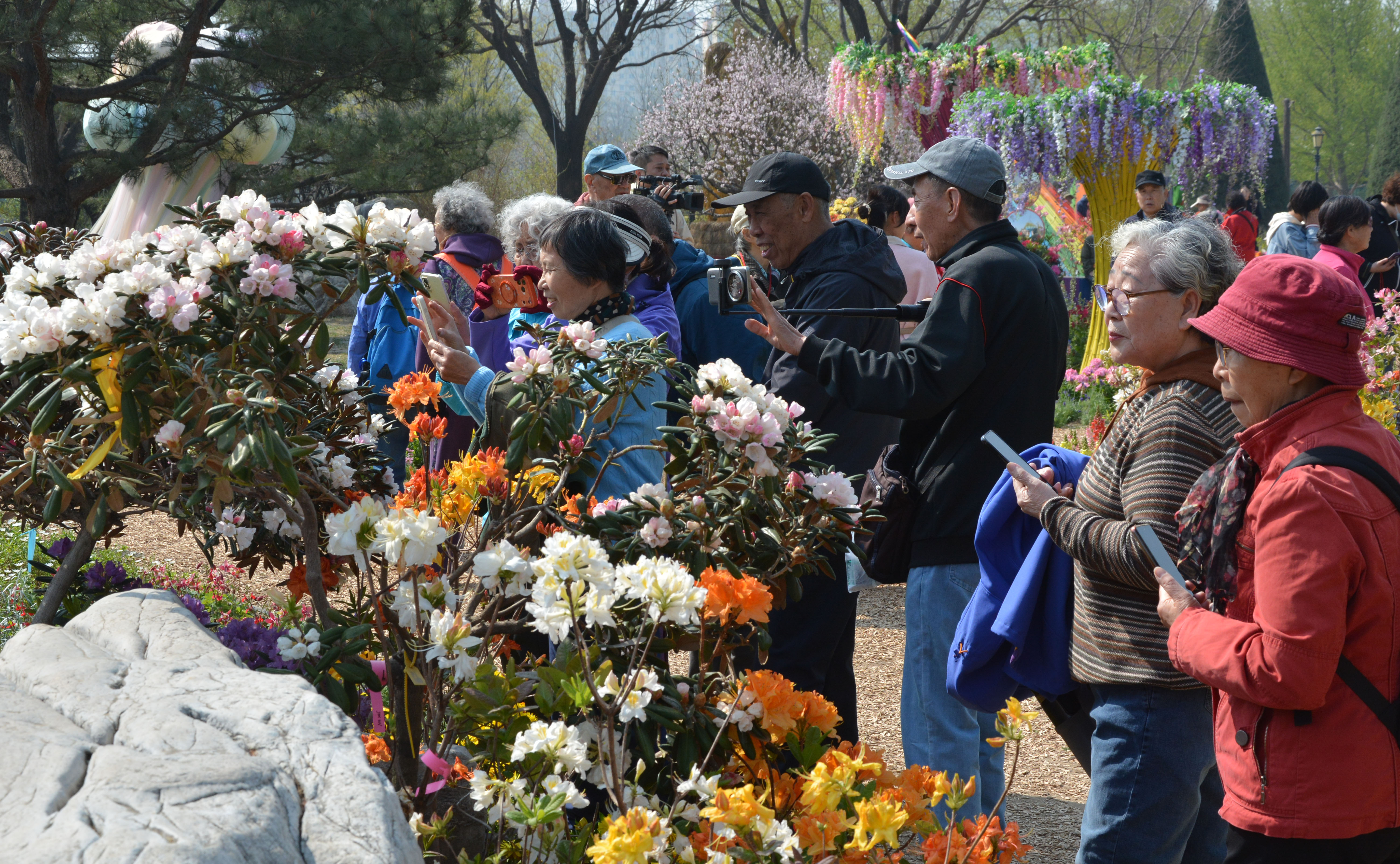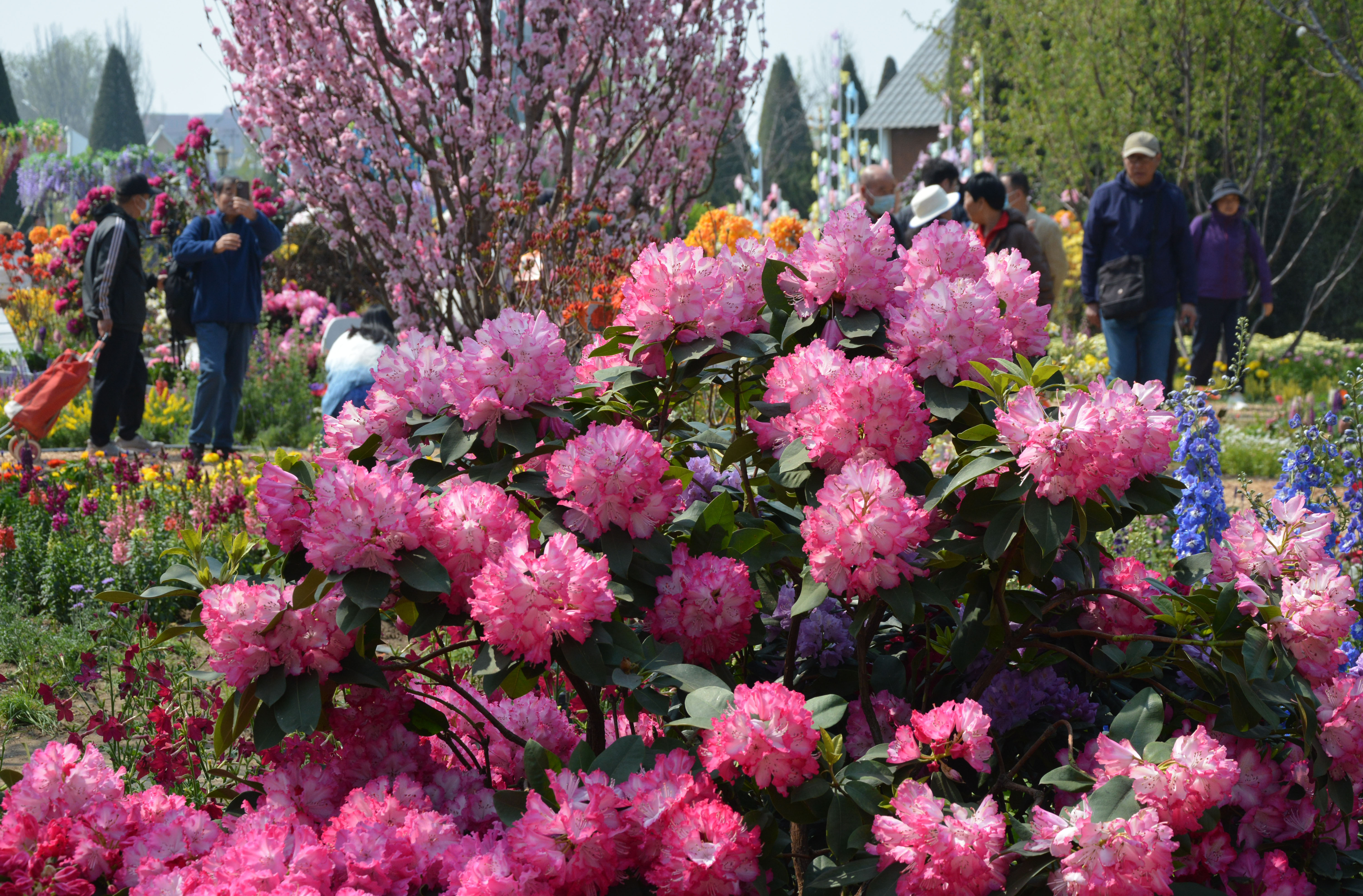 清明假期,世界花卉大观园天鹅湖东侧多巴胺花海展区迎来盛花期。展区荟萃40种珍稀高山杜鹃,红粉、复色、渐变品类精彩纷呈,“诺娃”“贵妃”“凯特”等特色品种颜值出众。