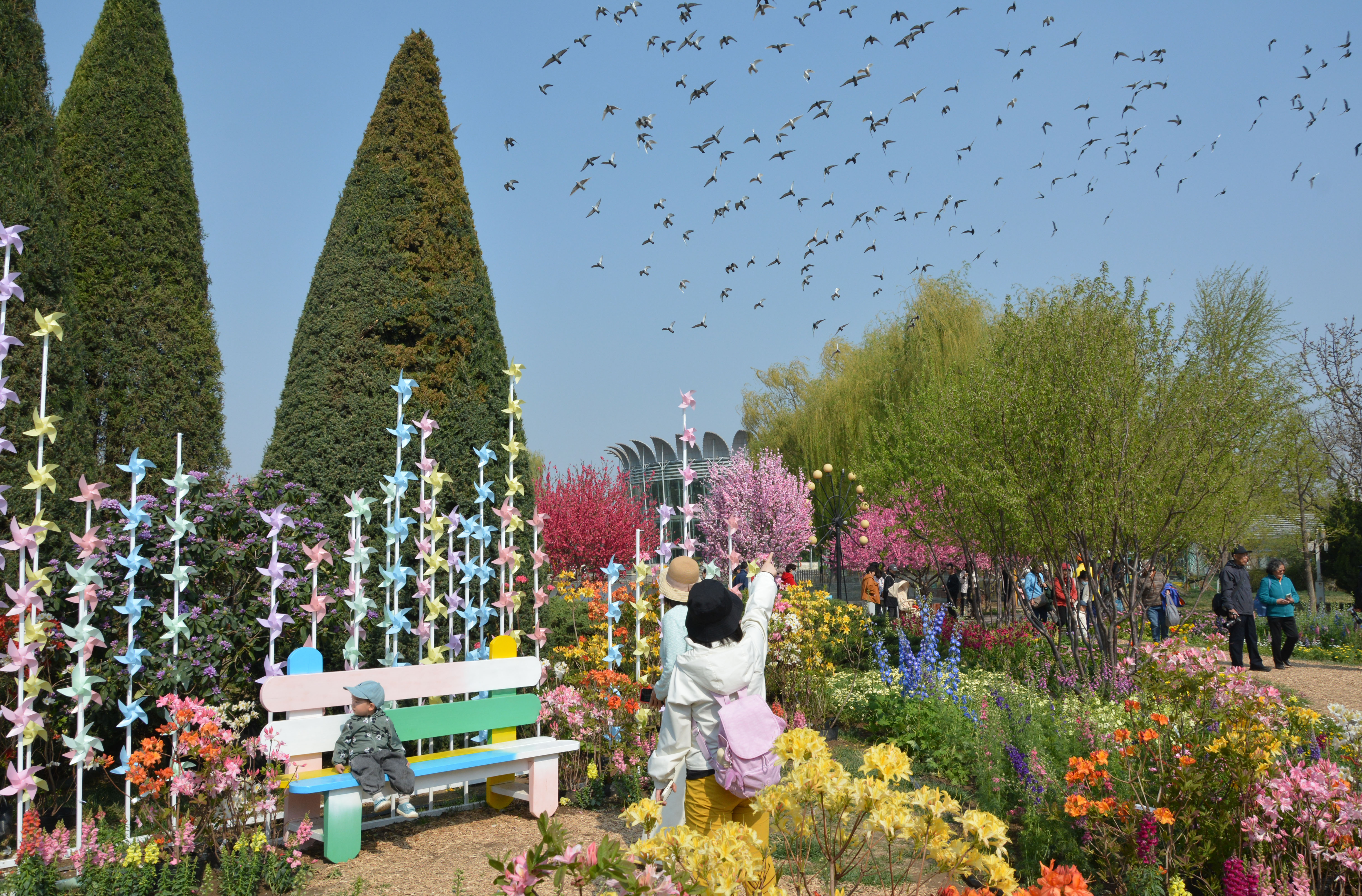 花海搭配二十余种高饱和度花卉,层次错落、色彩绚烂。园区设置多处网红打卡点位,景致如画,成为市民假日出游、赏花取景的好去处。
