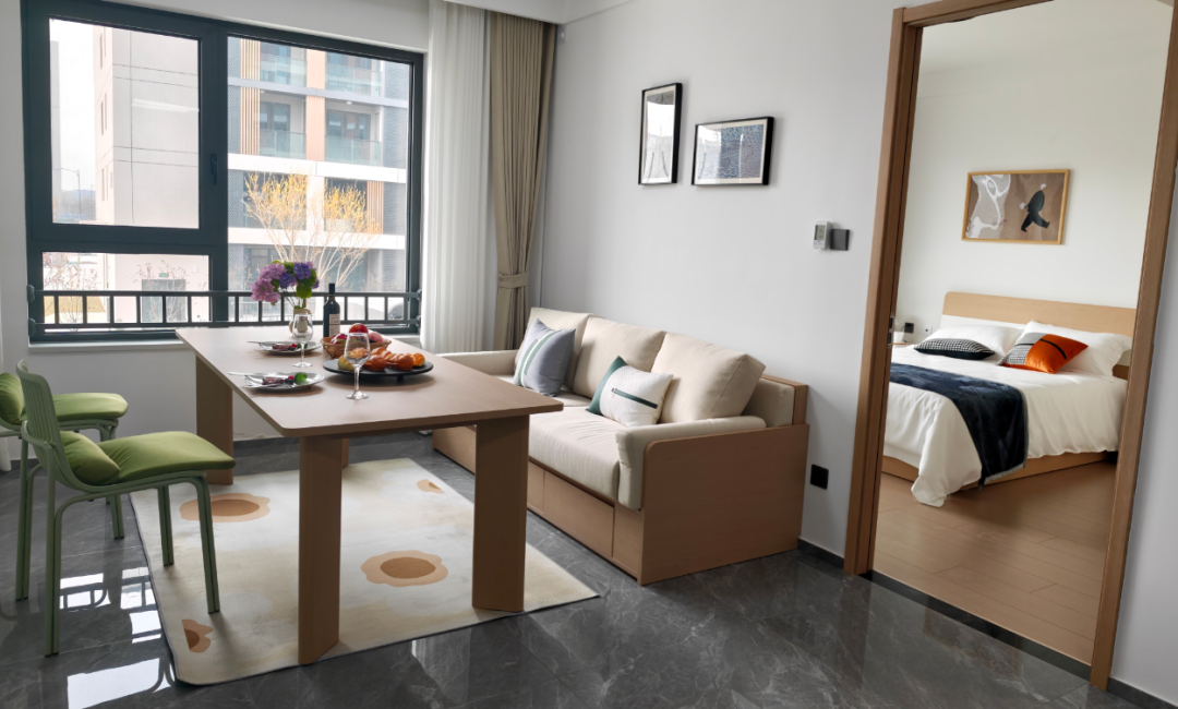 走进其中一间一居室,房间整洁宽敞明亮,床、桌椅、空调、冰箱等各式家具电器一应俱全,最大限度满足科研人员生活需要。许颍说:“投用前,我们充分对接各科研院所需求,为研究生提供了双人间,在丰富房型的同时满足不同人员入住需求。”