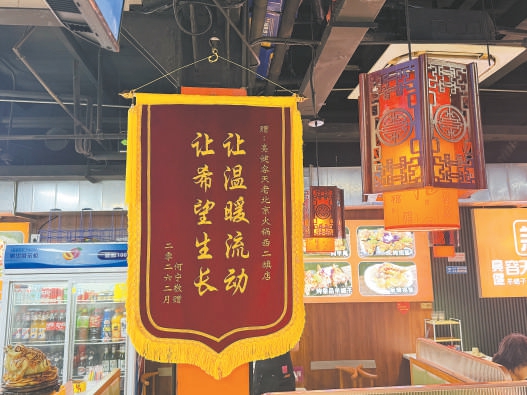 走进这家火锅店,只见店两侧悬挂着“人民英雄”“舍己救人”等十多幅锦旗和书画作品。随着夜幕降临,店内顾客逐渐增多,不到6时店外已经排起了队。晚上7时30分,一位来自石景山的顾客用餐后将一束花送到前台:“清明节了,我们来致敬英雄。”店员杜跃一边接过花束,一边连声道谢:“谢谢你们辛苦过来,还惦记着我们这个店,还惦记着老板。”