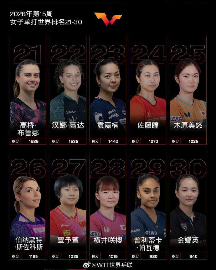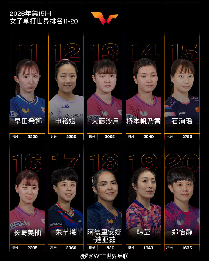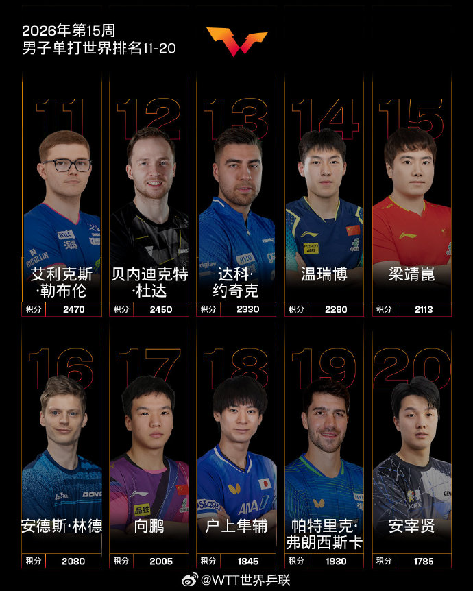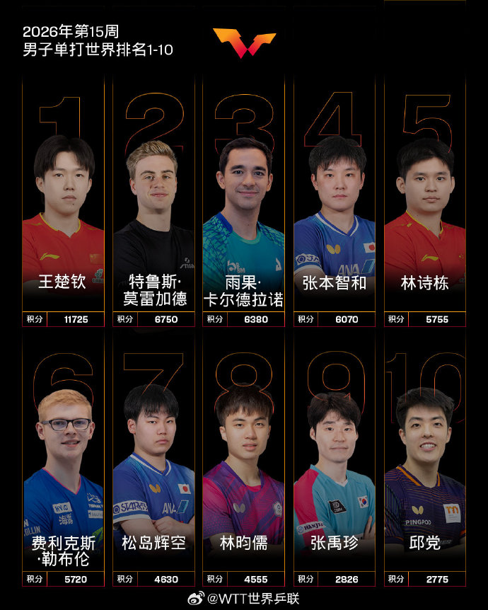 【国际乒联2026年第15周世界排名】