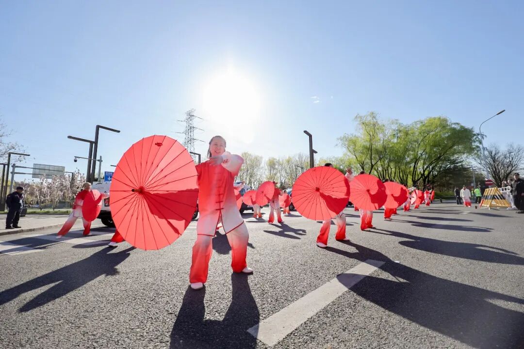 赛道沿线9块公里牌醒目展示“海淀人民有力量”“选择海淀,必将赢得未来”等主题口号,赋予奔跑独特意义;沿途设置10余个群文展演点,腰鼓、武术、舞龙舞狮、太极伞等特色表演轮番上演,实现“每公里都有喝彩”。此外,赛事特设高校挑战赛,定制专属号码布与加油墙,尽显青春活力,为赛事注入蓬勃朝气。