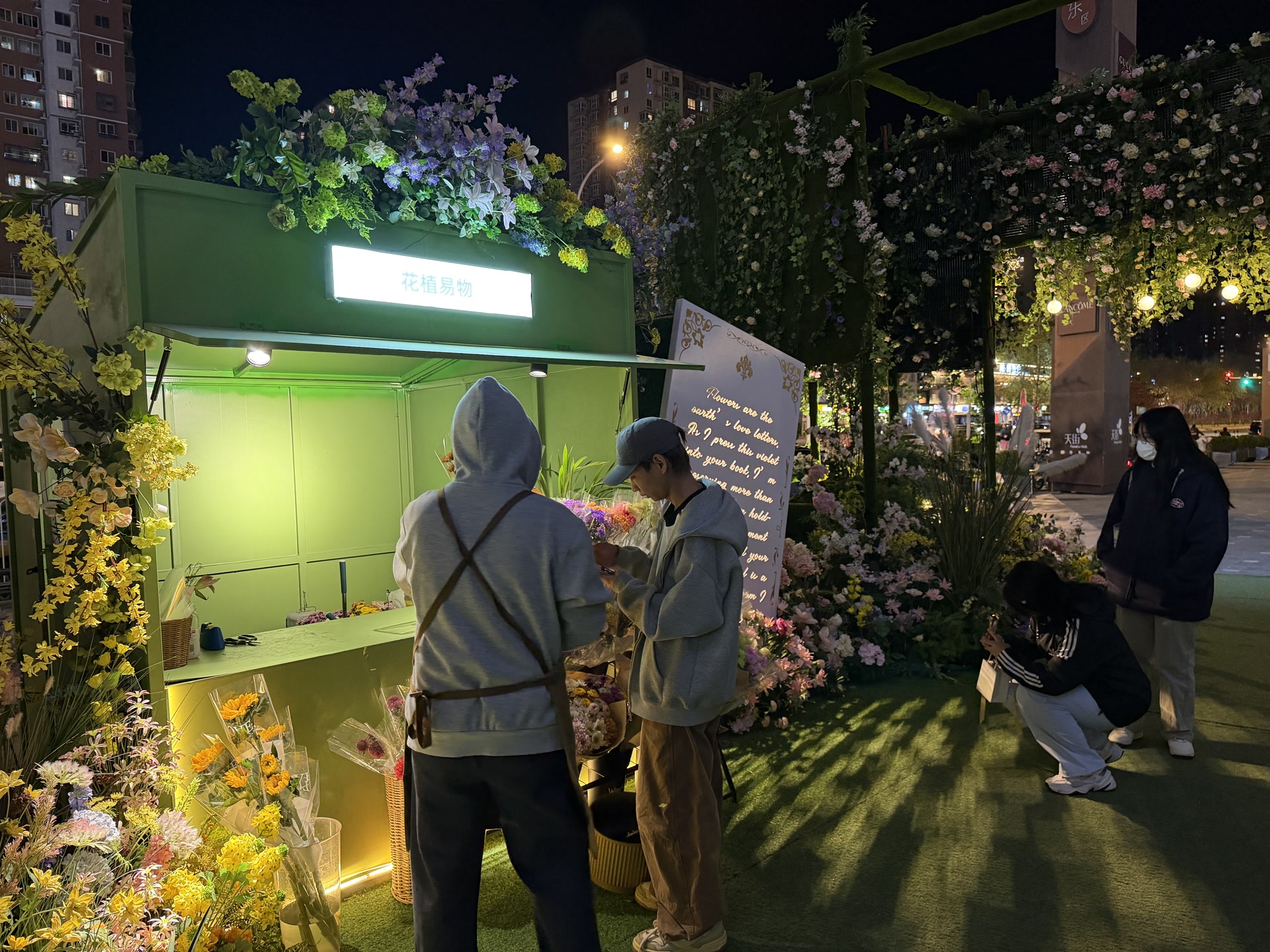 在位于朝阳区的龙湖北京长楹天街商圈,一场名为“天街醒春季——长楹Fa市”的春日主题市集正在举办。步入长楹天街东1门外广场,只见层层叠叠的花卉错落铺展,百米鲜花长廊前人潮涌动,市民和游客们三五成群,在由各色花束“织就”的艺术墙前驻足拍照,大伙儿直呼:“宛若看到了城市里的莫奈花园。”