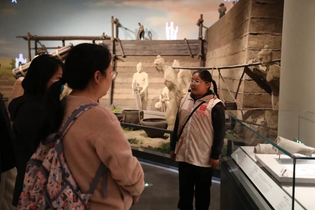 博物馆里,志愿者们定时提供志愿讲解。他们用通俗的语言介绍汉代历史、遗址发现过程与出土器物,将晦涩的知识变成有趣的故事,吸引了不少游客驻足聆听,成为园内一道清新的风景。