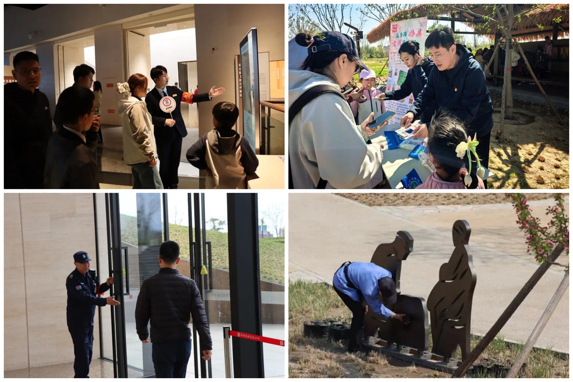 “百草名方”点景处,党、团员坚持值守,宣传文明游园为游客提供咨询服务。点景周边、博物馆里,保洁人员及时清理垃圾,安保人员定时巡查,提醒家长看护好儿童。每一处坚守,都为这座“遗址上的汉风园林”增添了一份安心与暖意。