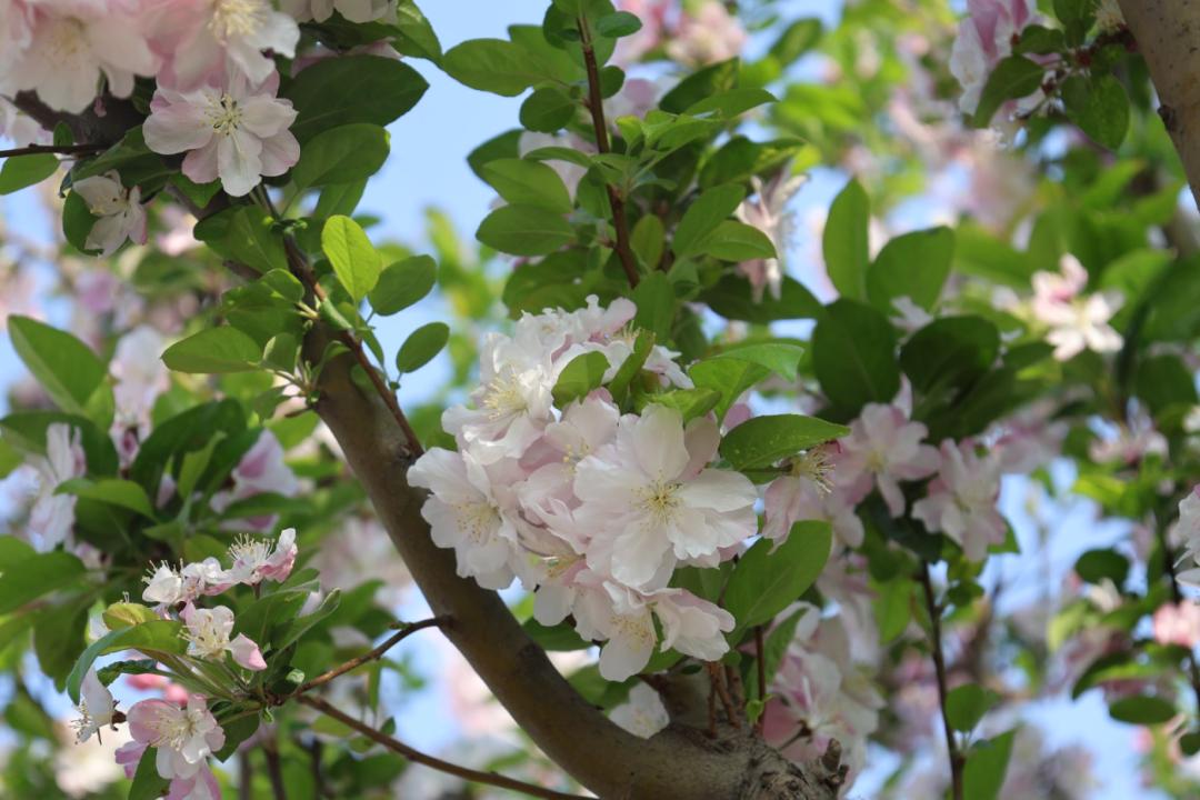 海棠花粉白相间