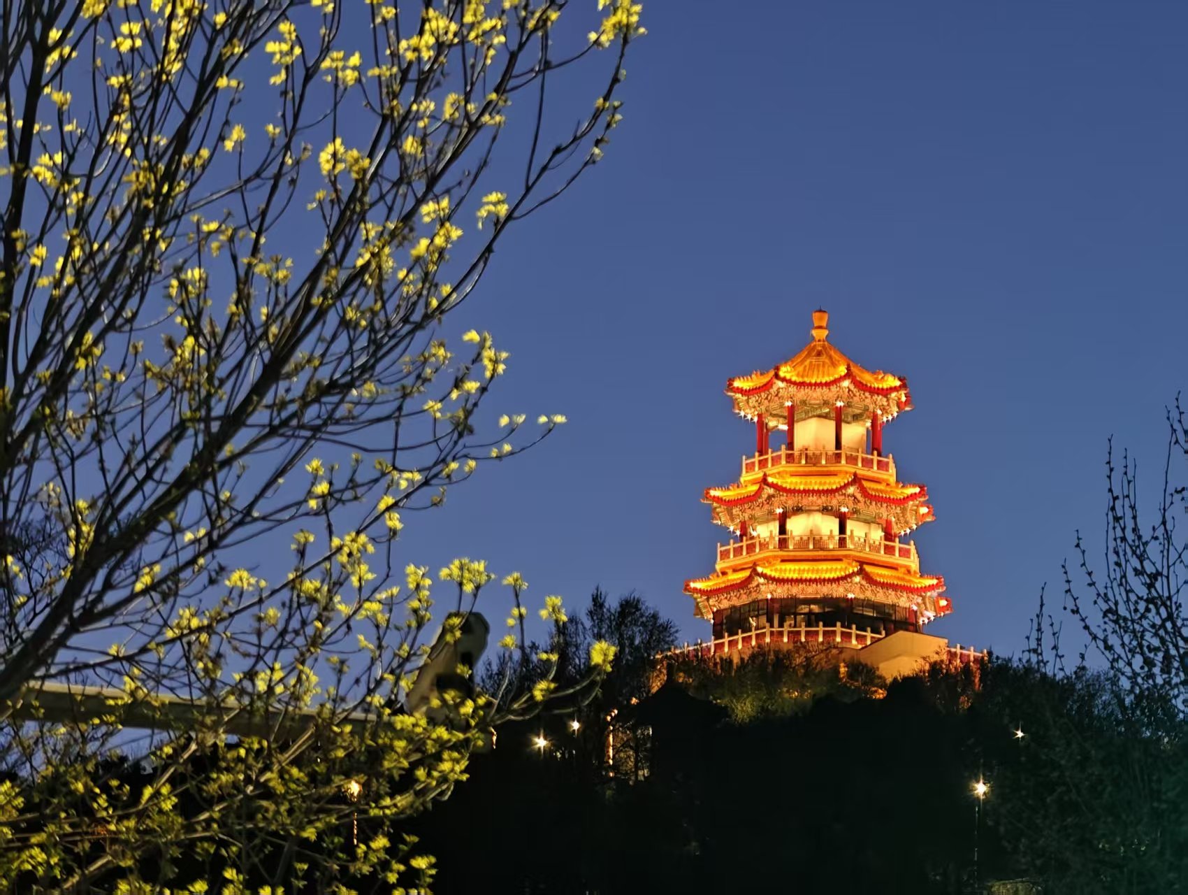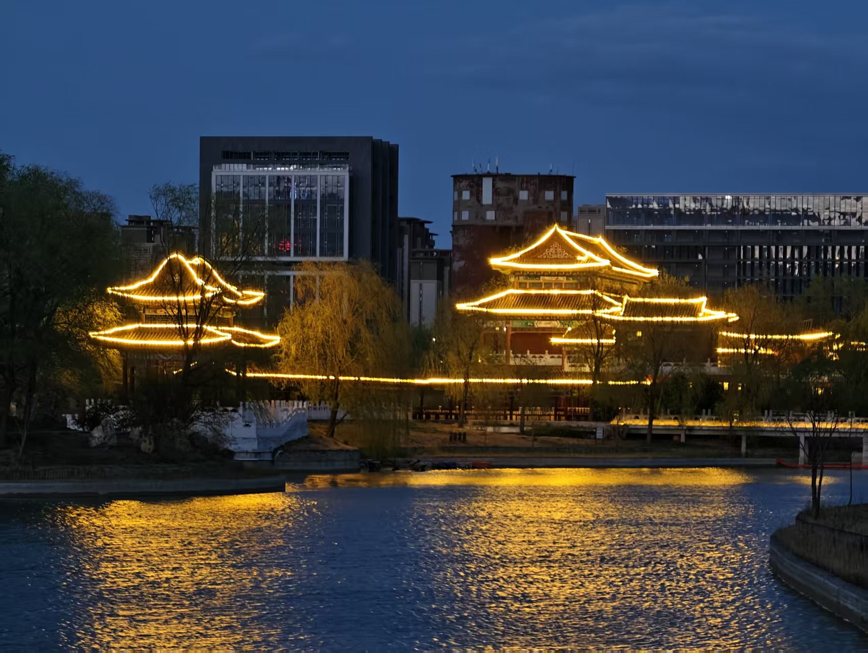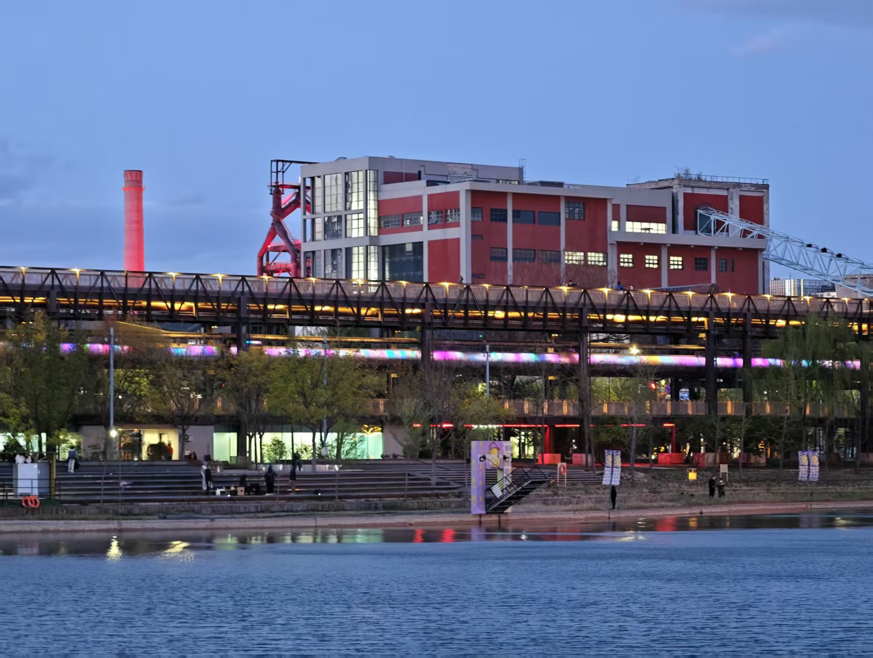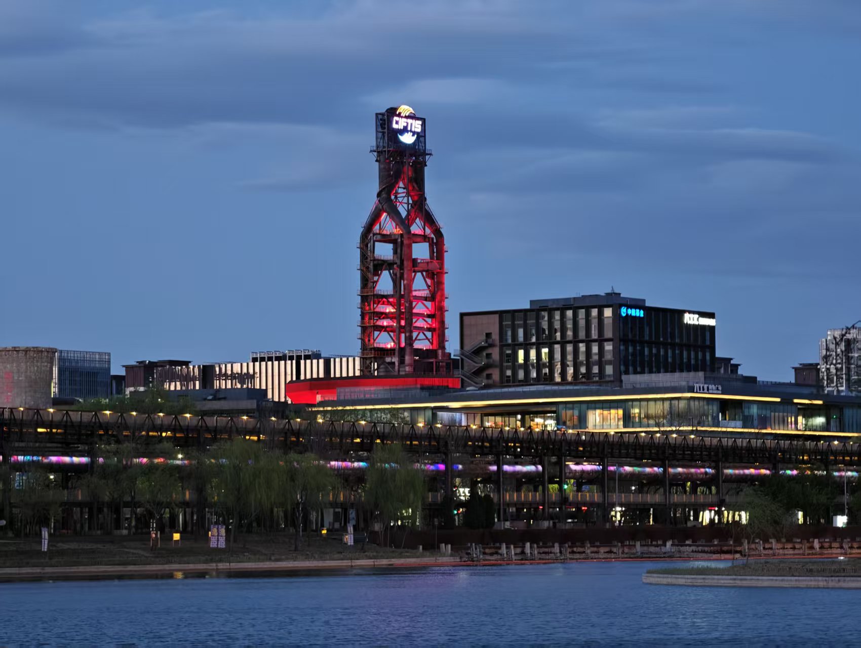 4月6日晚,随着夜幕降临,北京首钢园夜间照明开启,流光溢彩,景色醉人。