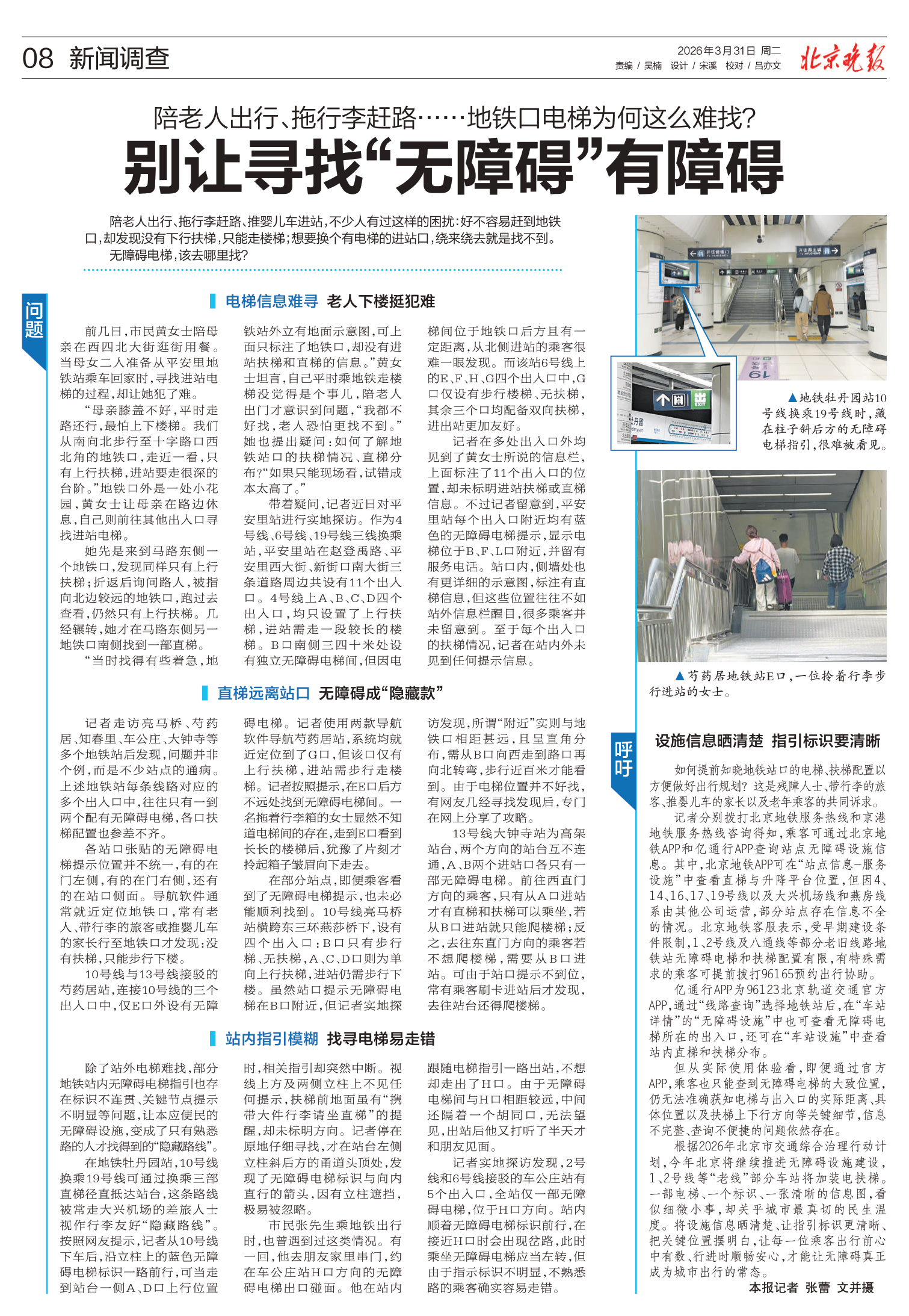 北京日报客户端《扶梯只上不下、电梯成“隐藏款”,地铁无障碍设施调查》报道推出后,收到大量读者反馈,普遍希望地铁出行中的各类指引细节能够进一步优化,记者持续追踪探访。