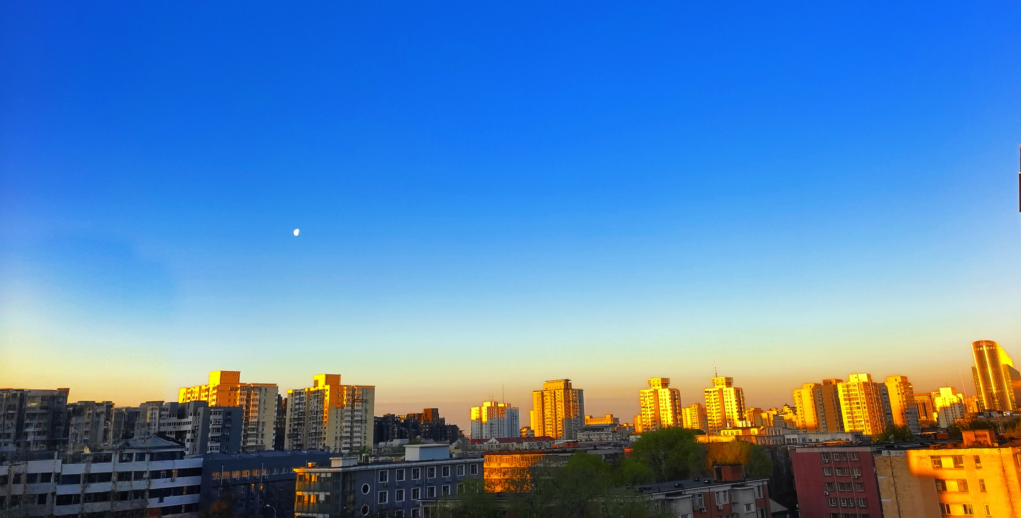 今天北京清晨日月同辉