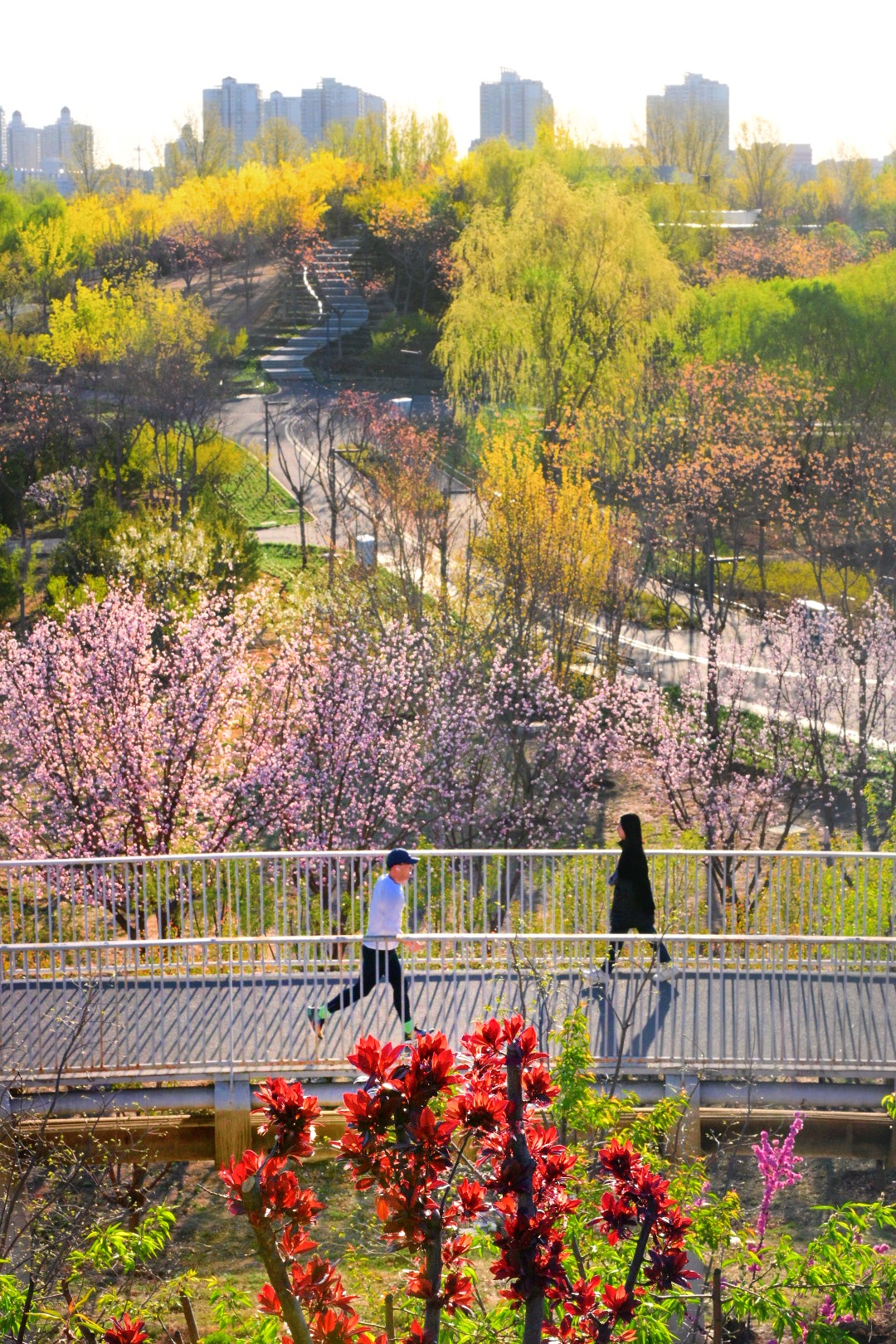 今天(4月7日)风和日丽,阳光明媚,奥北森林公园内春芽吐绿,百花争艳,沐浴春光,万物春天竞自由,人与自然和谐共生,一幅幅祥和的春日画卷不时浮现眼前。