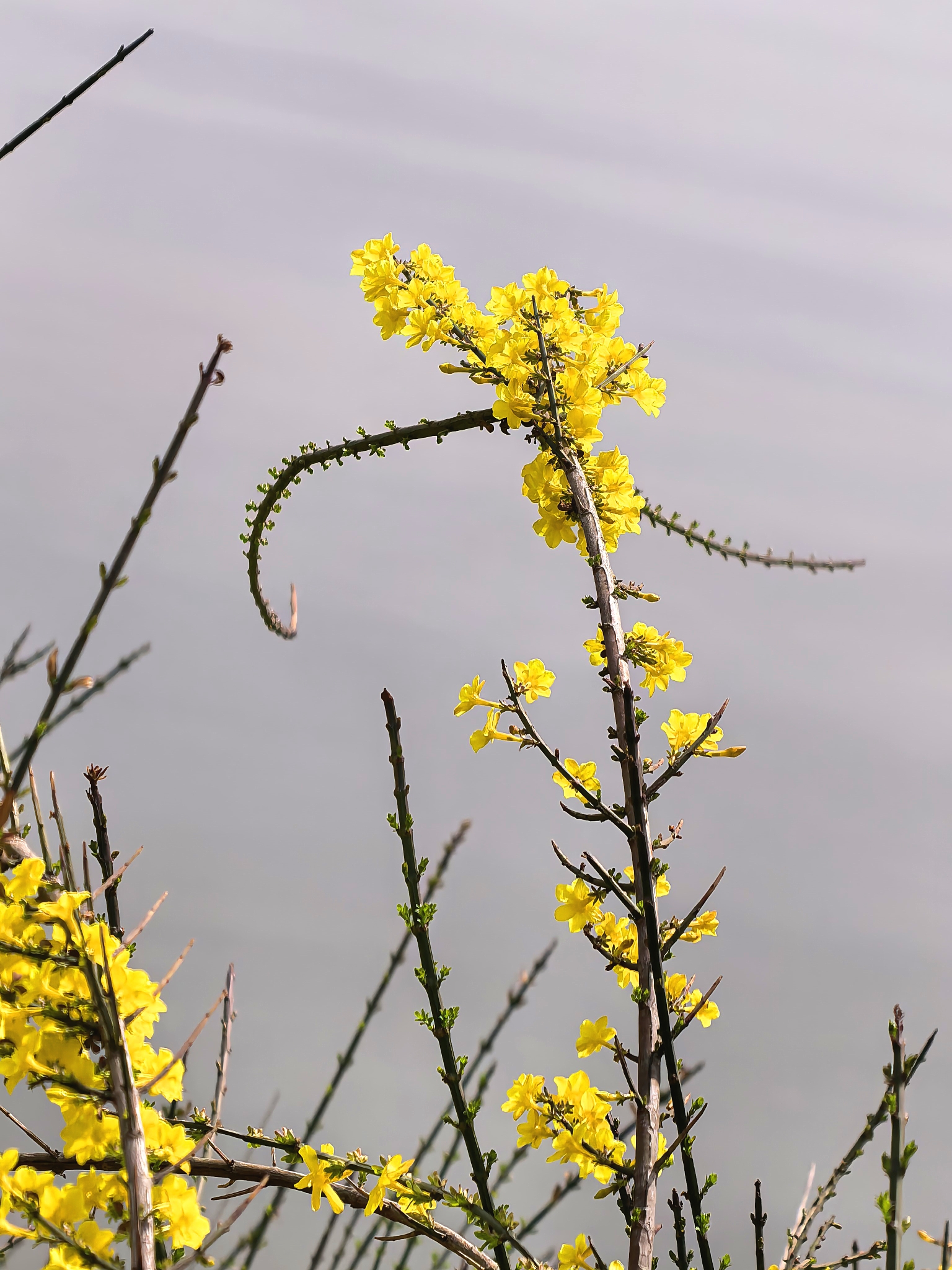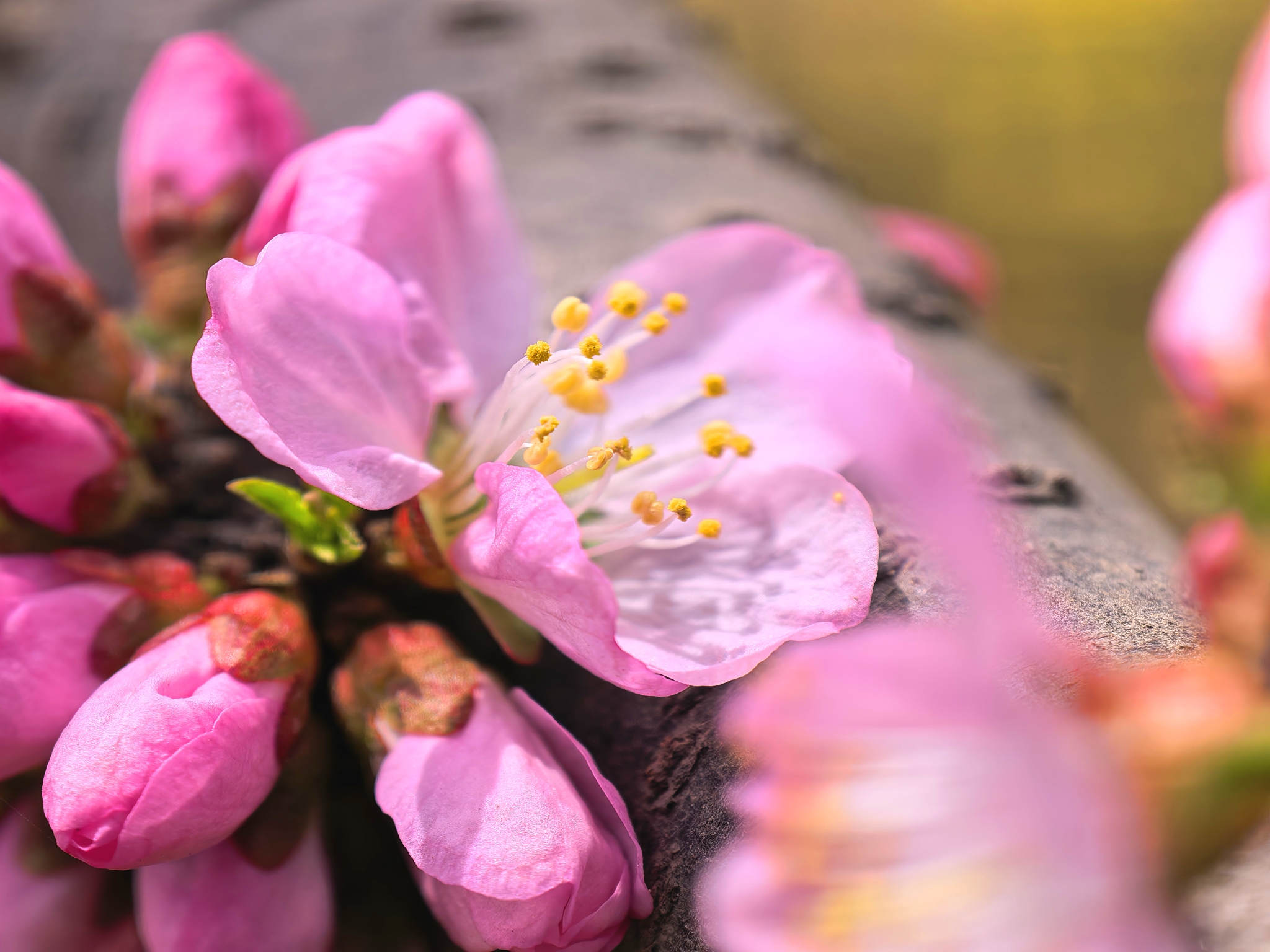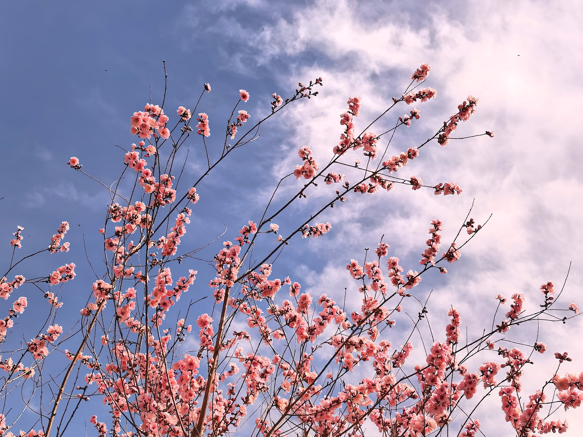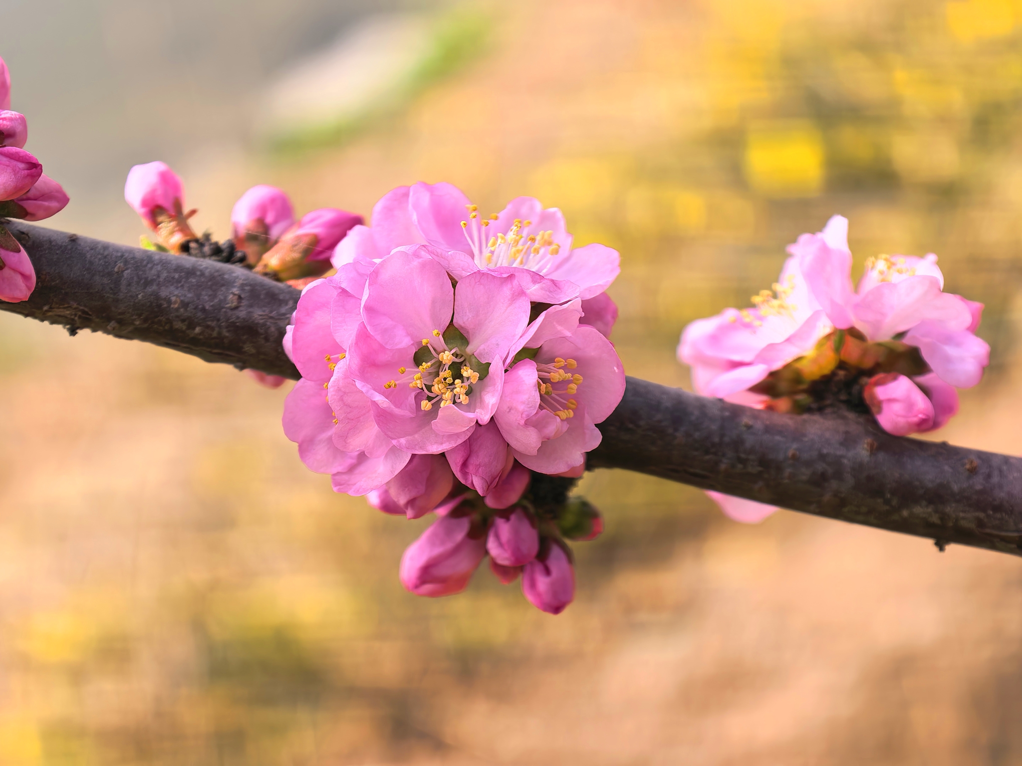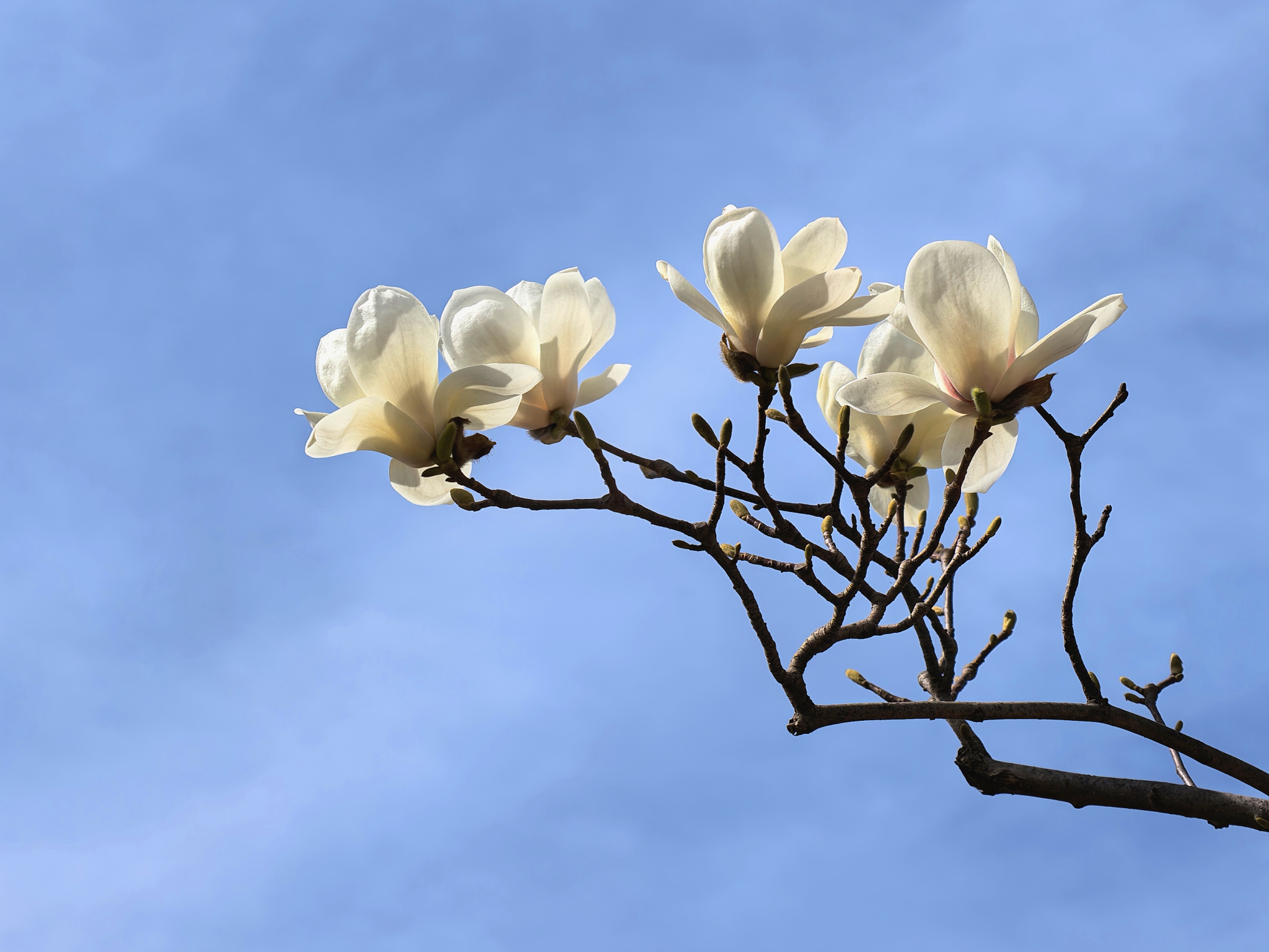 4月7日,北京天空湛蓝,通州镜湖之滨景区多种花卉绽放,春意盎然。