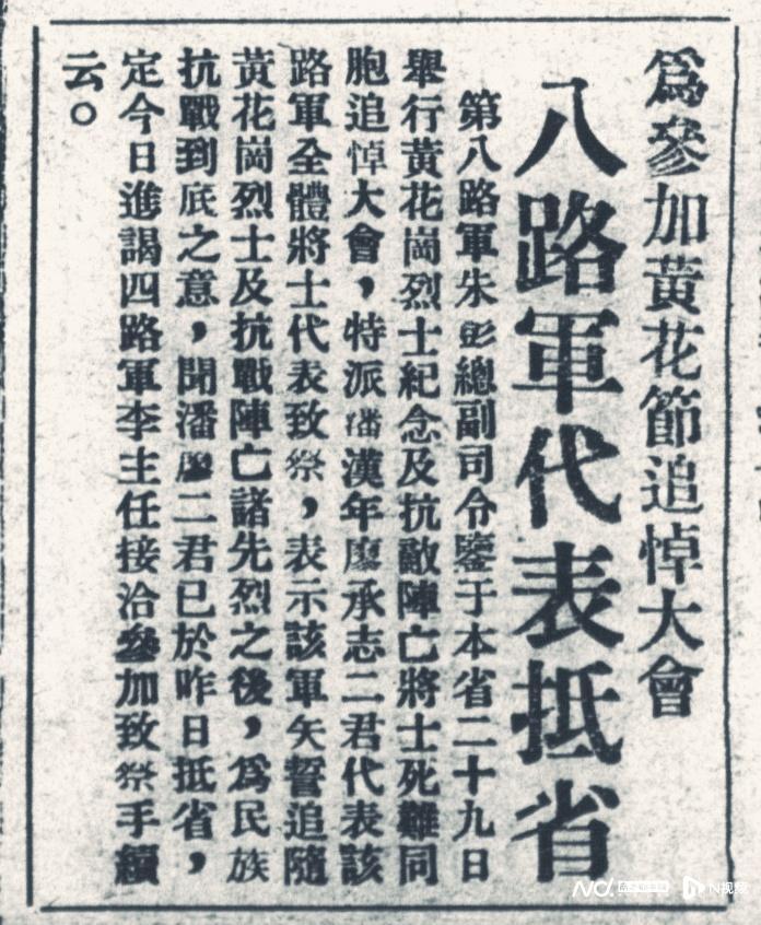 1938年3月29日《救亡日报》关于八路军代表参加黄花节追悼大会的报道。