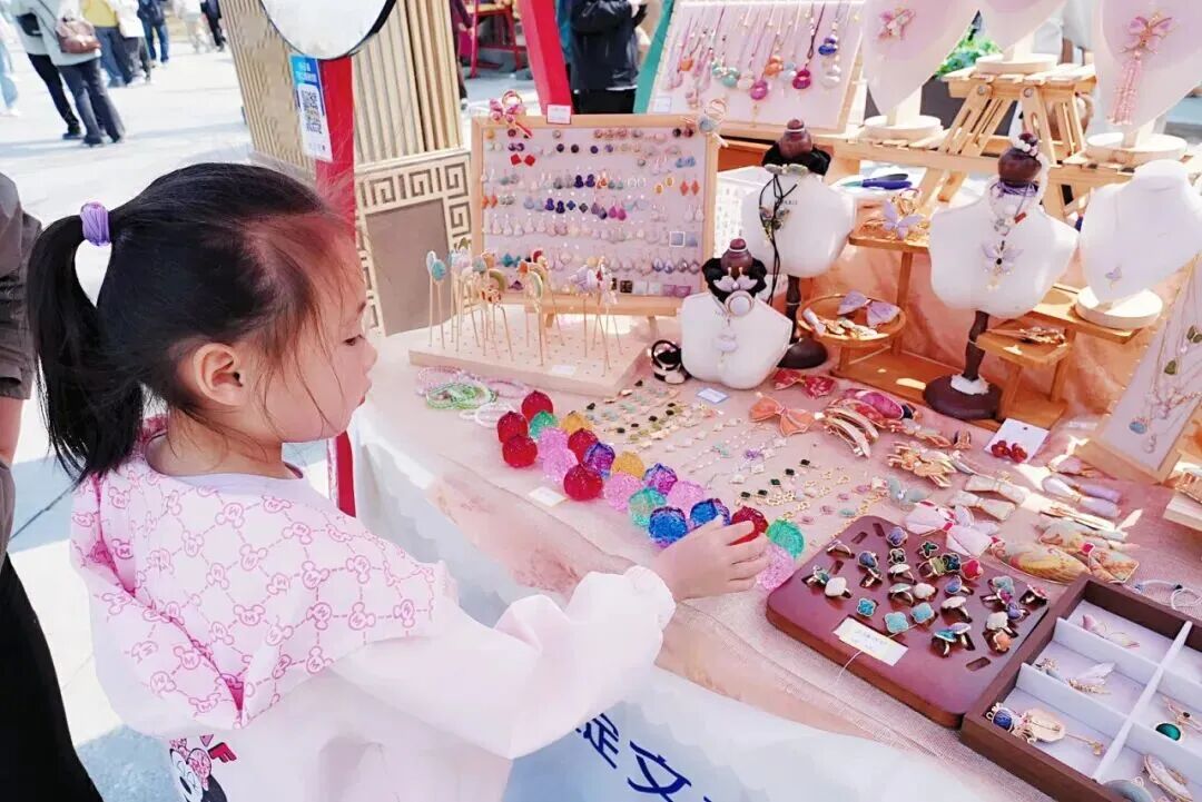 同庆街的“海淀有礼”文创市集摆满十骏图盲盒、逐梦苍穹宇航员手办、老北京兔爷系列等匠心好物;香山革命纪念馆与西郊线联袂推出的“赶考”主题列车穿行春日,乘客扫码答题可领取限量明信片;圆明园海棠书院的“星星向融 童心筑梦”孤独症儿童艺术画展,用画笔传递温暖与包容。