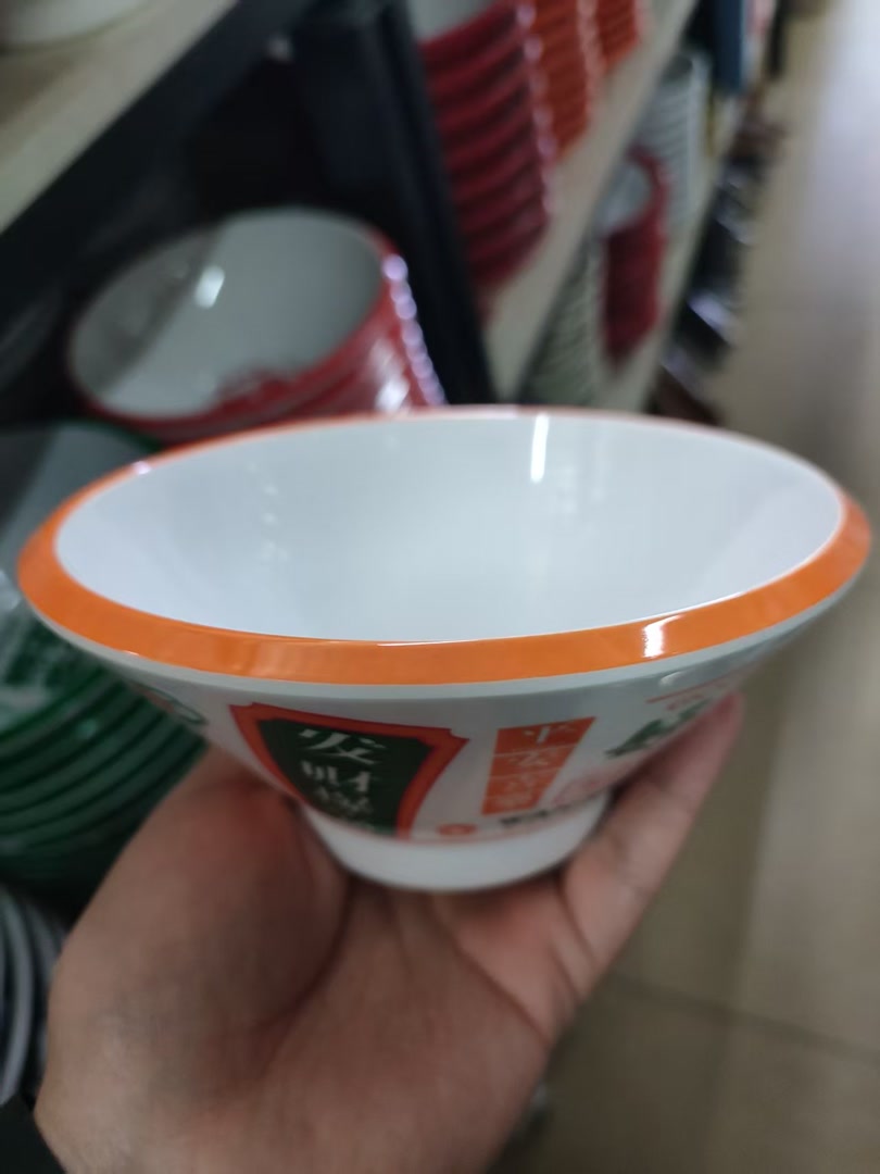 大厅有不锈钢、陶瓷、密胺等多种材质的餐具供应。一家店铺里有各式各样的大碗。“吃面用的。”老板介绍,一整个货架的大碗都专供面馆。有造型浑圆的传统青花大碗,有上宽下窄的新式面碗。从视觉上看,两种碗的碗口都属于宽口,但前者碗身饱满,从宽到窄过渡缓慢,后者碗身凌厉,从宽到窄过渡迅速。