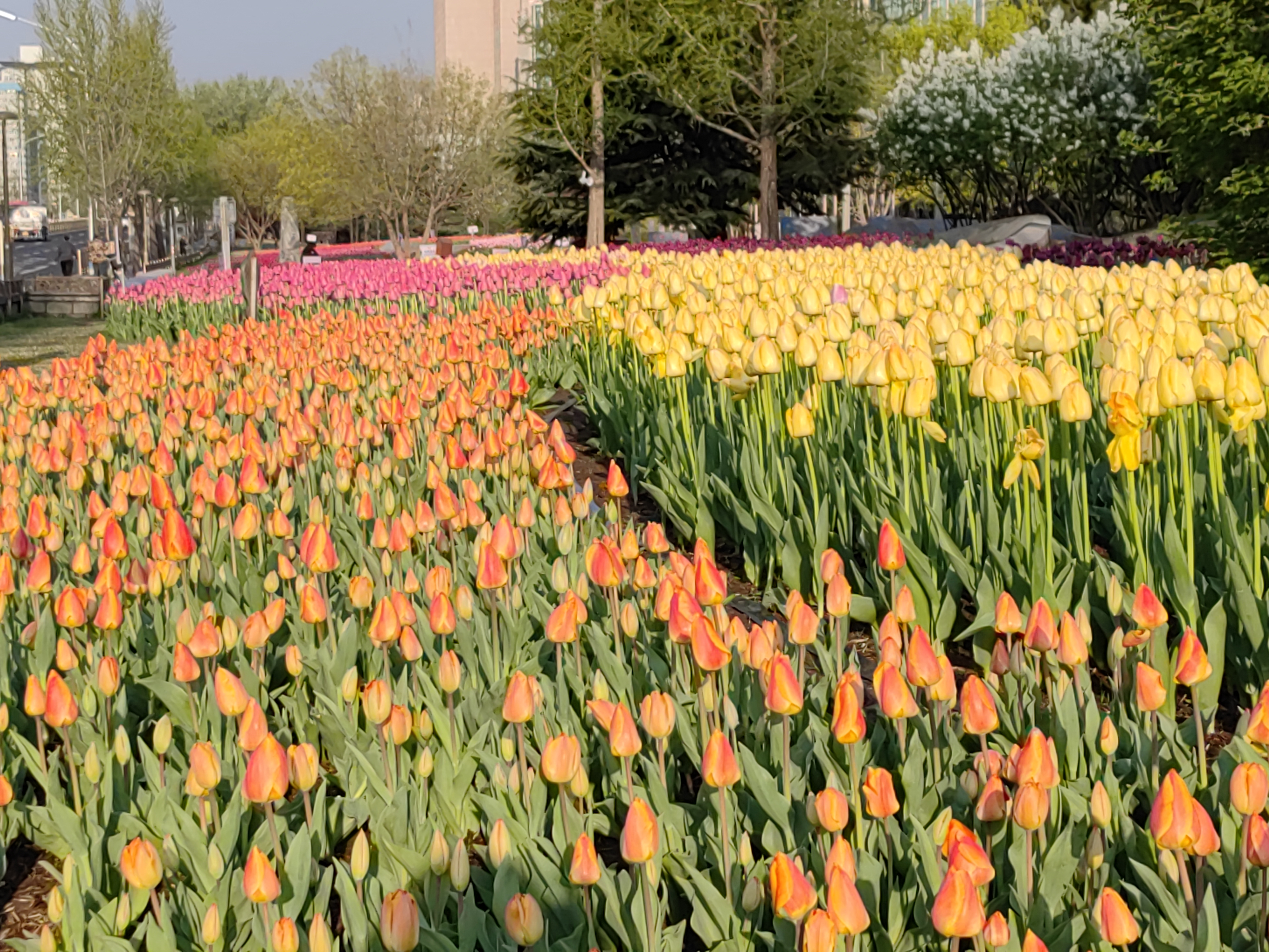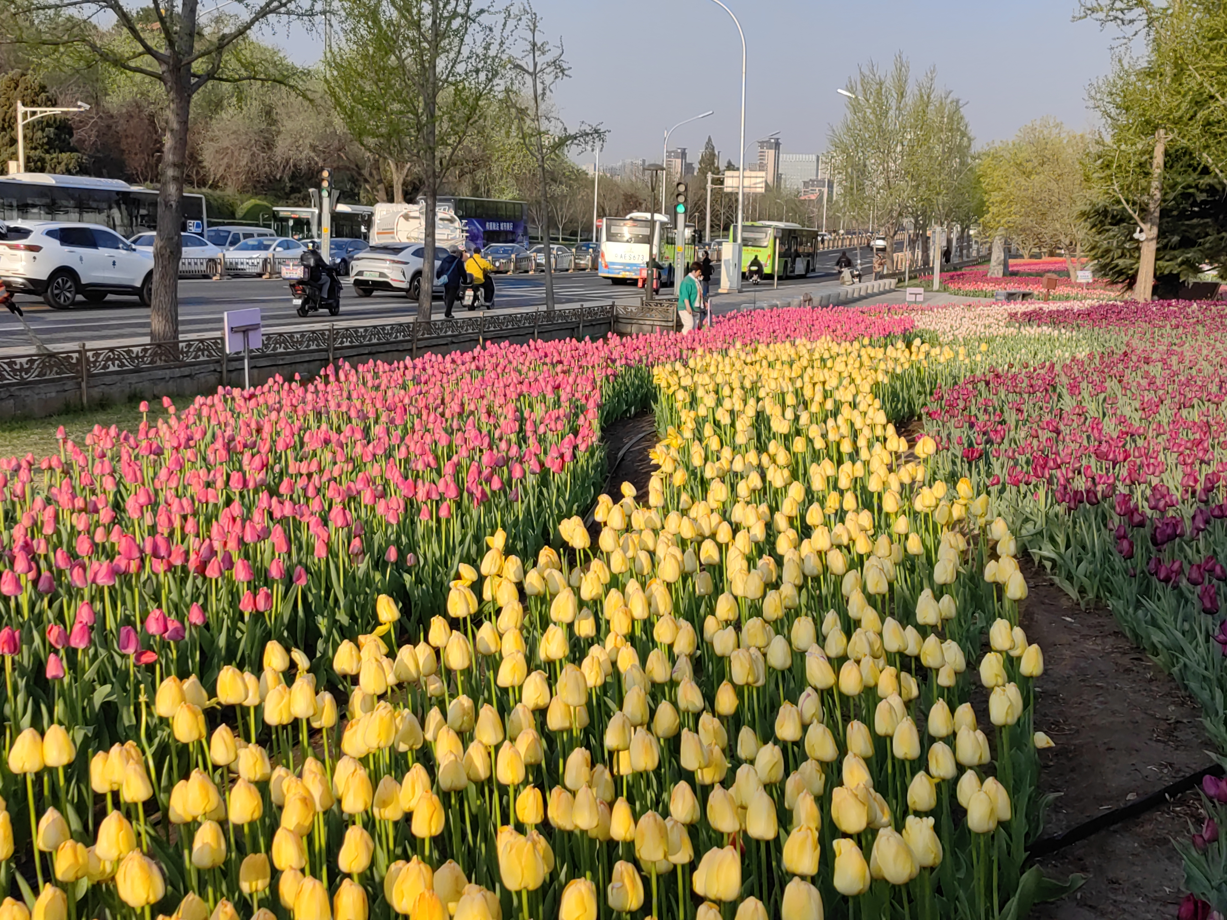 4月8日,作为石景山区春季园林景观的重头戏,位于游乐园南绿轴锦绣公园的郁金香赏花区现已全面进入盛花期。据了解,区园林绿化局于去年12月便启动郁金香精细化栽植工作,在1300平方米的区域内科学规划、深翻培肥,确保了5万余株、10余种郁金香种球顺利越冬。