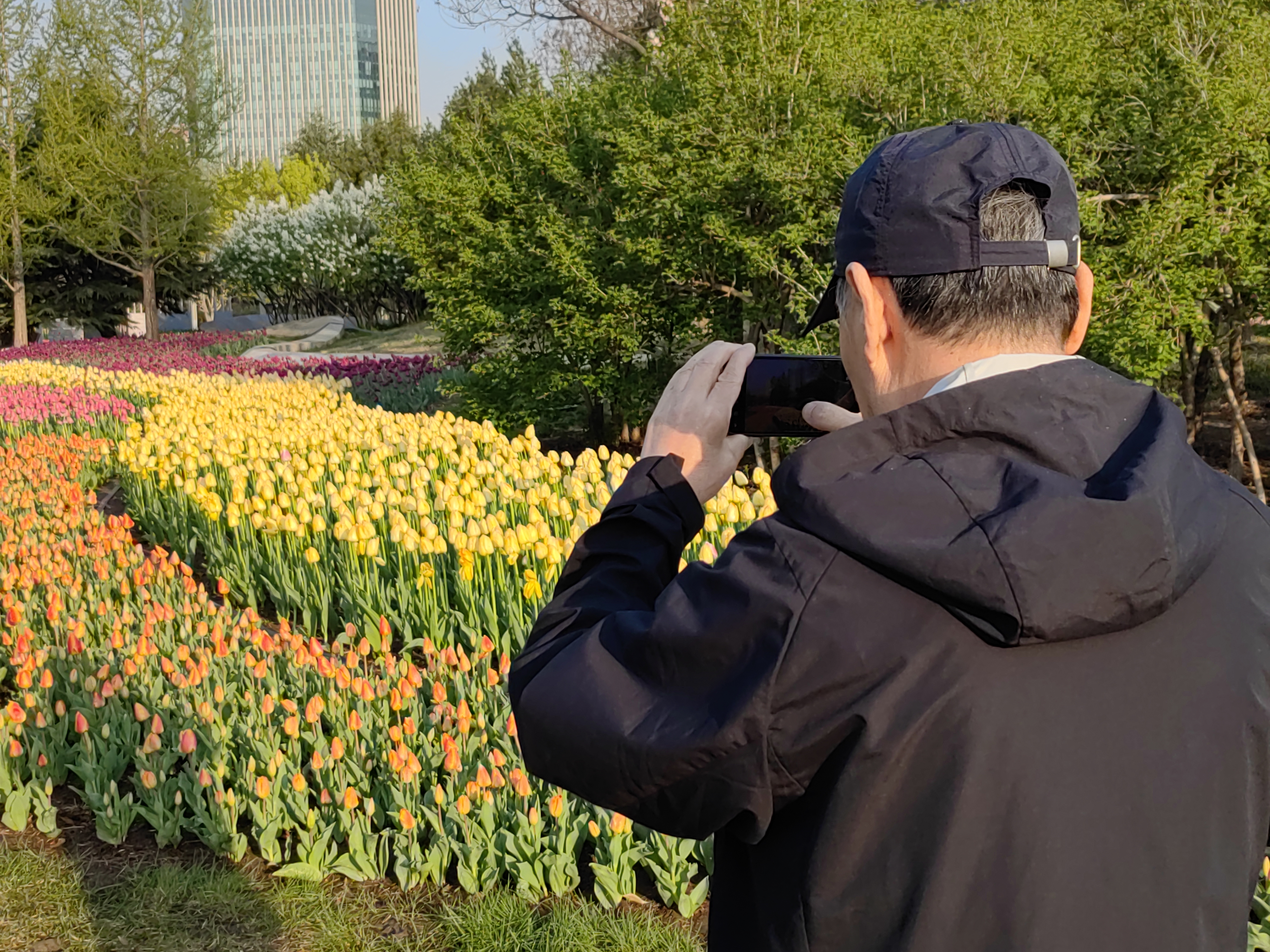 今春,这批郁金香破土而出,长势健壮整齐,呈现出“红黄交织、错落有致”的绚丽画卷。眼下,漫步在绿轴锦绣公园,各色郁金香竞相绽放,与周边的城市肌理相映成趣。这不仅是一处亮丽的风景线,更是石景山践行“生态惠民”理念的生动缩影。通过精细化养护管理,石景山正将“推窗见绿、出门进园”的美好愿景变为现实,让市民在繁忙的都市生活中寻得一片静谧花海。