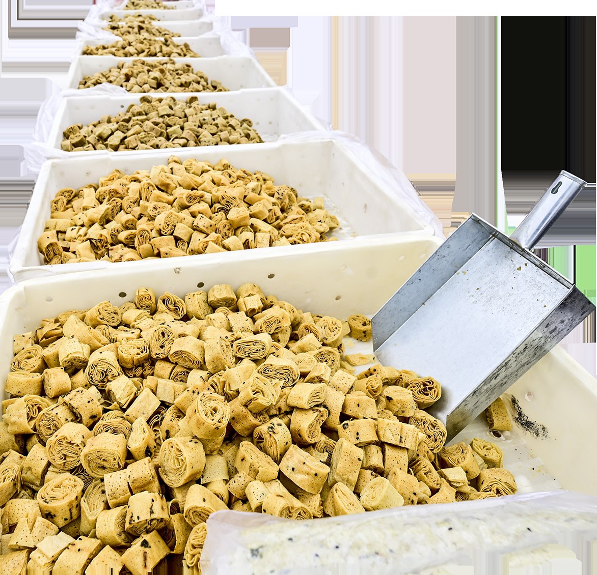 咯吱盒主要以绿豆面掺和杂粮为原料,经多道工序制作而成,最核心的特点就是“薄、干、耐存”。“成品不含一丝多余水分,在没有冷藏的条件下能存放1个月以上,装在布包里随身携带,不占空间也不易变质。”王陆昕补充道,这种食物的诞生和大运河漕运的特殊需求有一定关联,“原料容易获取,面粉、杂粮或绿豆在运河沿岸的集镇都能买到;制作工艺简单,船上的小柴炉就能操作;储存和食用都方便,完美适配漕船狭小的空间和长途航行的场景。”咯吱盒的出现,解决了船民的主食储存难题,成为数万运河儿女的生存依托。