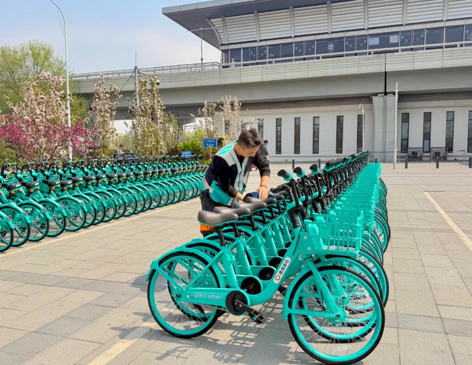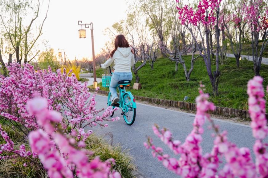 顺义区作为北京东北部生态休闲目的地,春日风光别具一格。罗马湖畔碧波荡漾,经滨水空间提升工程改造后,北岸原巡河路改为骑行路,新增环形跑道连通两岸,骑行其中,可看杨柳拂岸、水鸟翩跹、波光粼粼,是市区周边难得的静谧骑行路线。中粮·祥云小镇以“WAKE翻开春天”为主题,将阅读、艺术与消费深度融合,成为顺义假日文旅的核心打卡地,骑行至此,可逛街小憩,轻松享受城市微度假的乐趣。如今,在地铁国展站、花梨坎站出站口,一排排崭新的滴滴单车整齐停放,市民扫码即骑,真正实现“地铁+单车”无缝接驳。