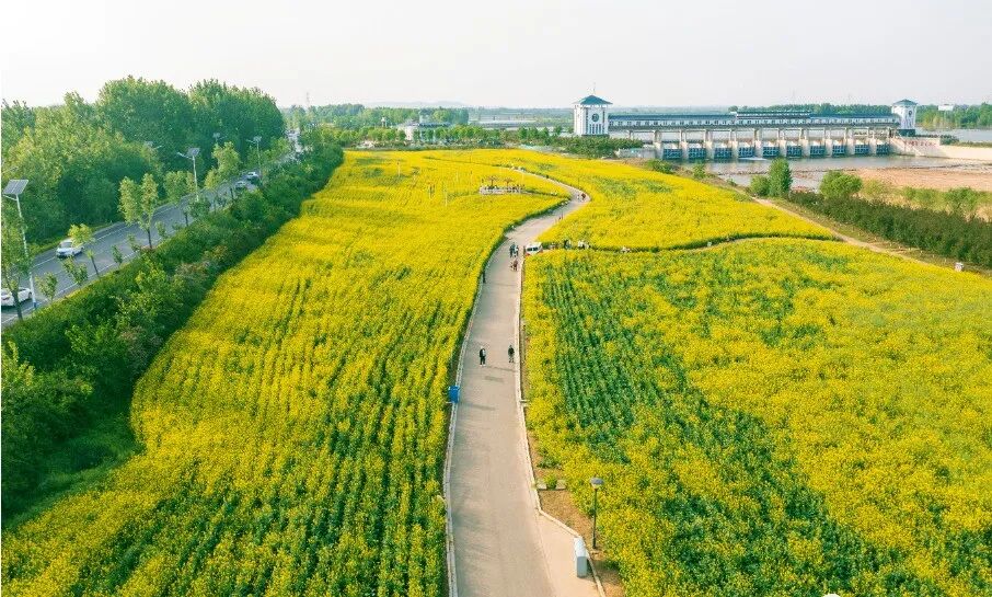 沭河国家湿地公园河畔垂柳抽芽,油菜花金黄一片,是春日踏青、散步野餐的绝佳去处。