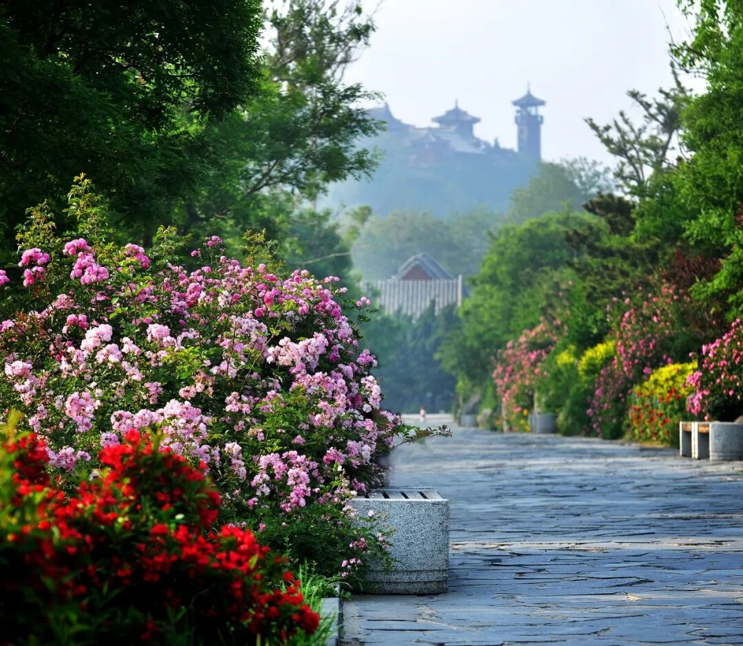 登上仰天山,山风裹挟着花香吹来,俯瞰满城春色尽收眼底。春日海棠、丁香、迎春次第开放,落英缤纷。