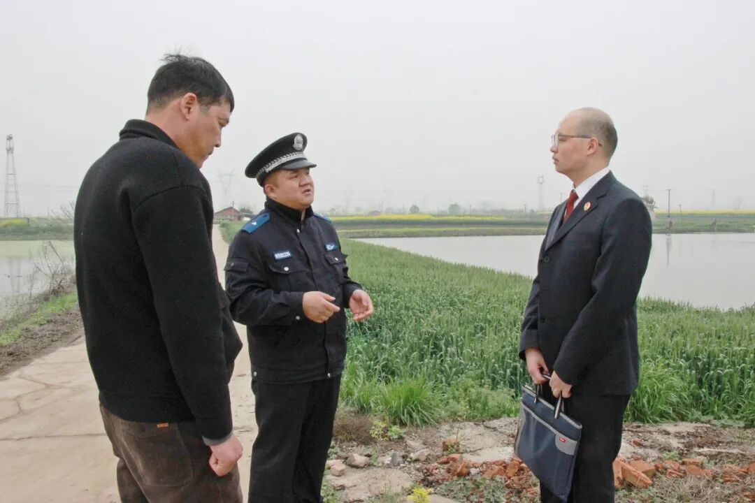 3月24日,鄂城区检察院联合当地公安民警、村委会主任,深入案发地开展回访核查,现场询问近期巡查情况。