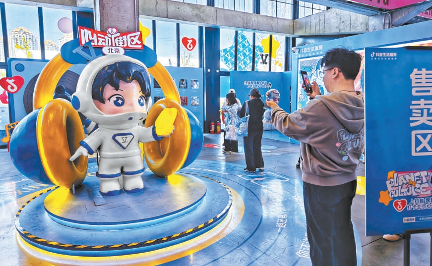 歌迷在THE BOX打卡“小北斗”雕塑。
