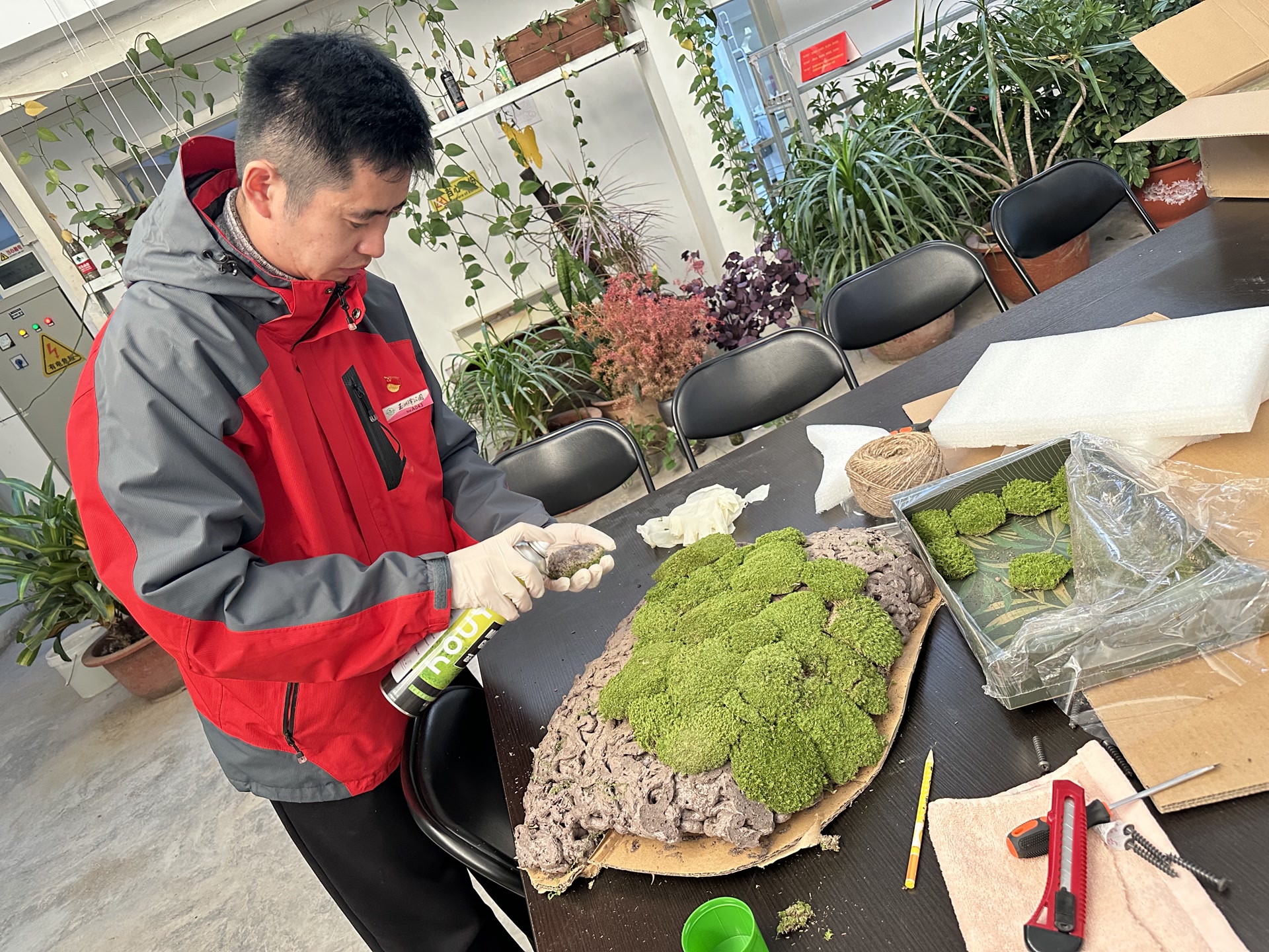 “樱花和紫藤的生长节奏完全不同,一个喜暖,一个需循序渐进升温,要让它们在春节前同时盛放,难度不小。”刘东骏介绍道。最开始,他们把樱花和紫藤分在两个温室促培,发现紫藤萌动所需的温湿度比樱花更高,前几天一直没有变化。“我当时就跟队员说,咱们就当实验了,不开就不开,没想到花芽分化后,它开花的速度比樱花还快,两三天就从花穗伸长到盛开,算是个意外之喜。”