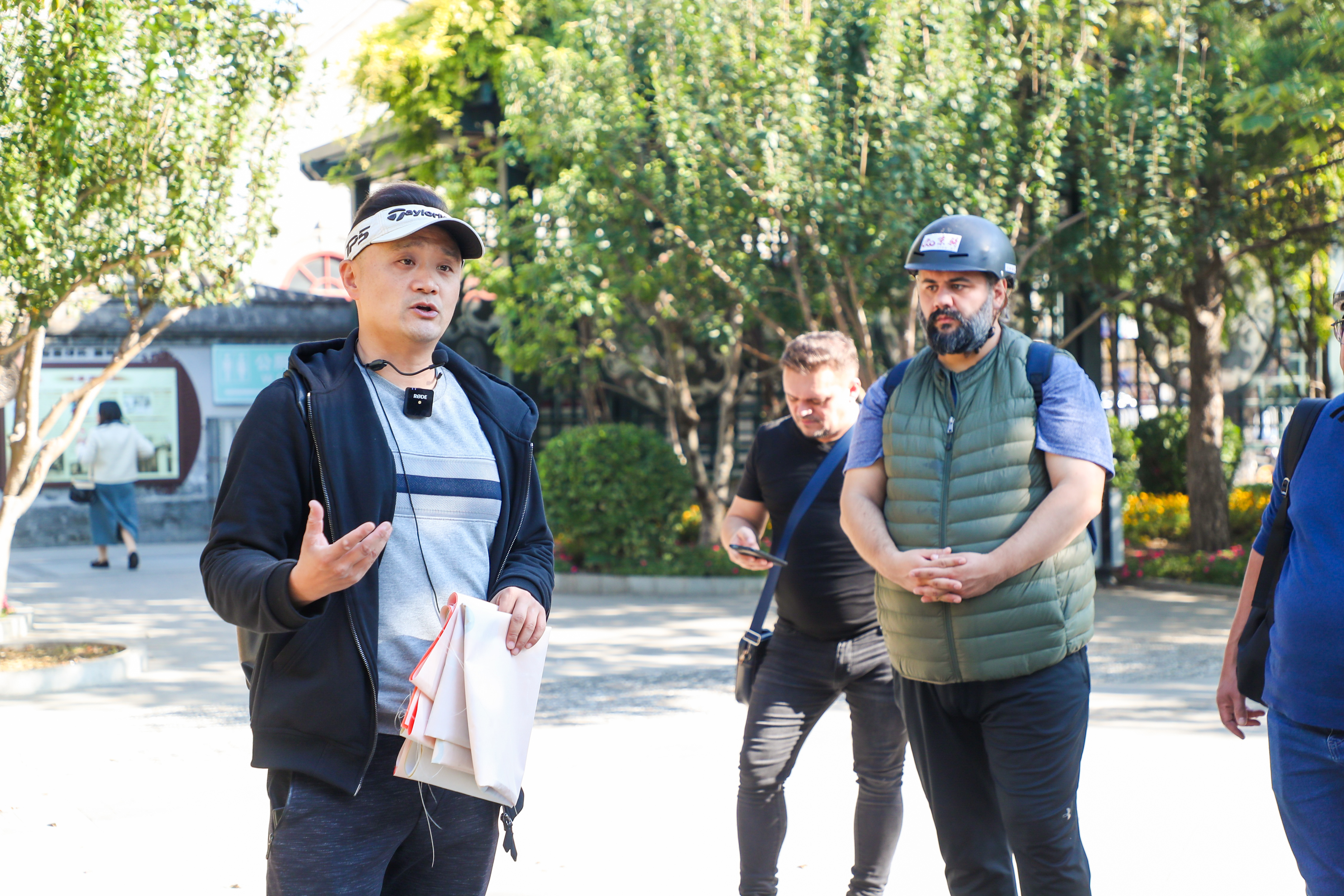 “我来过北京38次,你的讲解太有画面感了。”这位意大利游客竖起大拇指。
