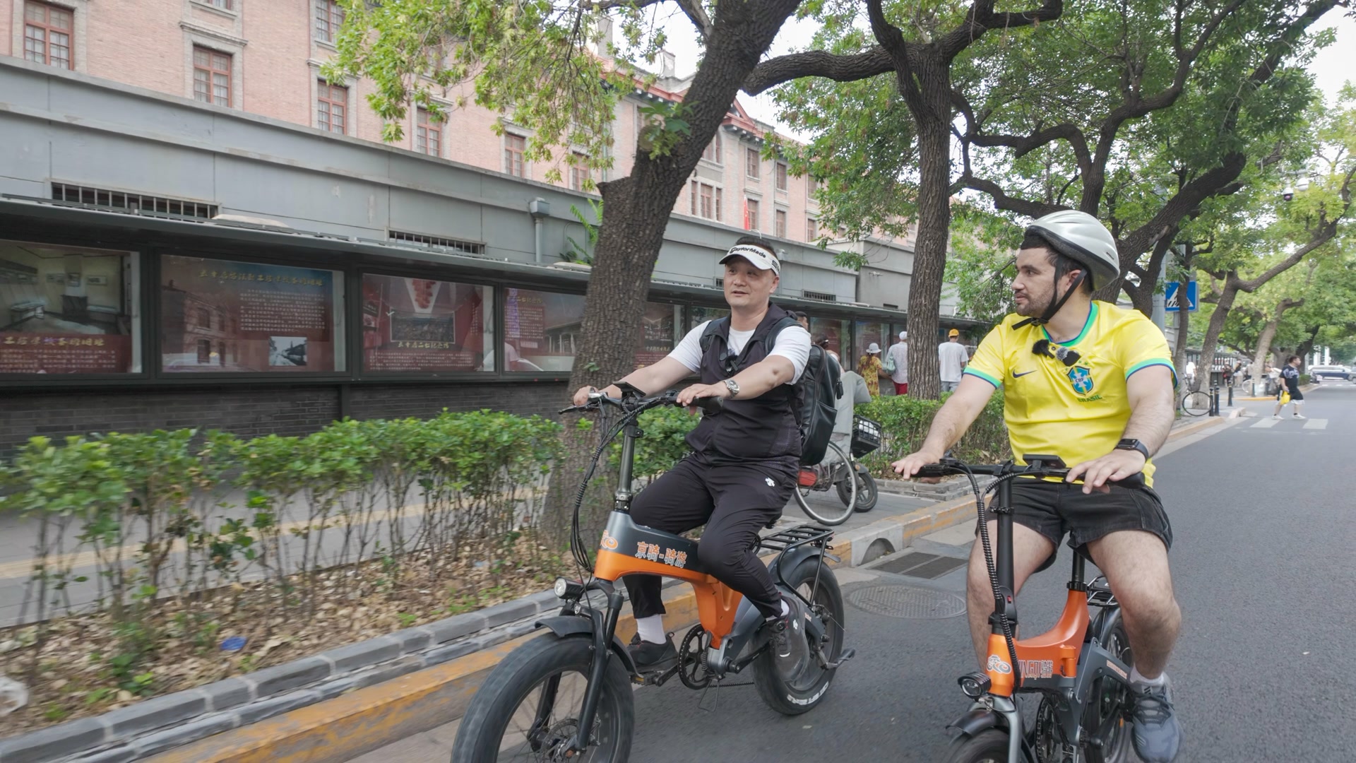 四月的北京,春风正好。崇文门新侨饭店门前,窦俊杰推着一辆助力自行车,正在检查车况——轮胎气足不足,刹车灵不灵,车筐里的讲解器有没有电。这是他每次带团骑行前的固定流程。