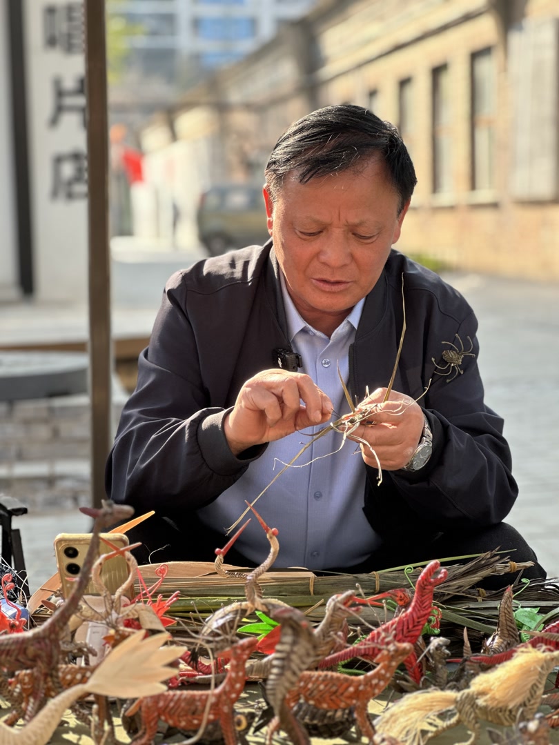 如今,张帮寿在798有自己固定的摊位,还积极参与非遗进校园、进社区的活动,还曾去往卡塔尔、迪拜、爱沙尼亚等地参加文化交流活动。2024年,他的“张氏草编”入选了丰台区级非遗项目。