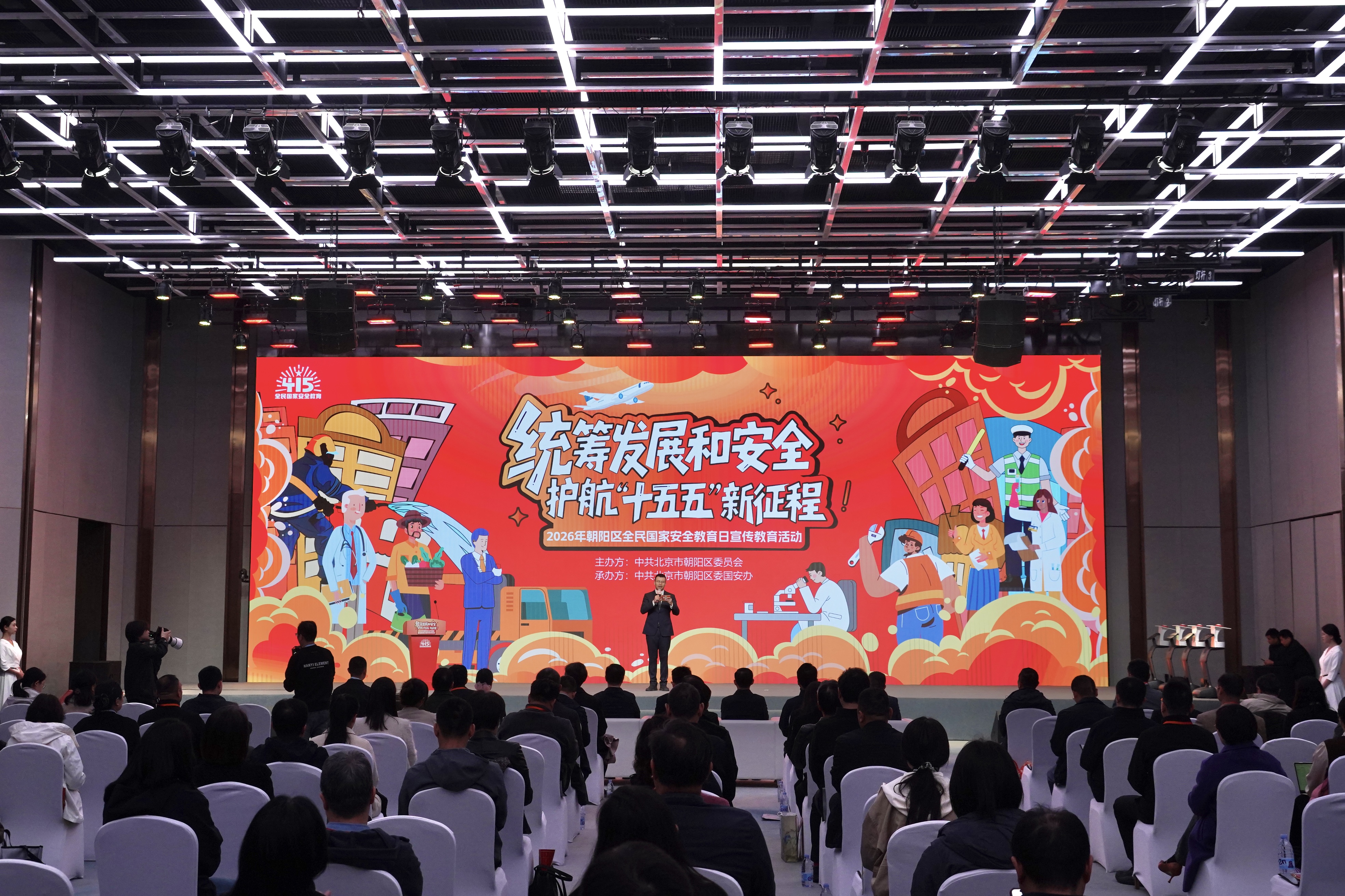 启动仪式上,朝阳区全民国家安全教育代言人——“朝小安”向大家推介了2026年全民国家安全教育日朝阳区举办的部分活动:“两场重要人群专题研讨交流会,一场面向即将出国留学的青少年和老师代表,请安全专家和学长学姐面对面聊‘留学千万条,安全第一条’;另一场面向科技企业高管骨干,帮企业‘出海不踩雷’。此外,4月15日将在朝阳区戏曲艺术中心设置‘法治宣传市集’分会场,邀请居民朋友观看主题电影、参与普法市集互动。”