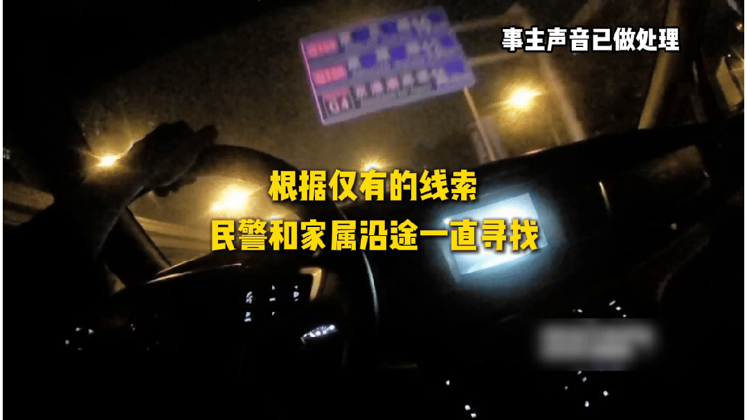 夜幕降临,气温渐低,老人衣着单薄,情况危急。民警立即驾车全力搜寻,循着线索先后赶往老人曾出现的几个地方,却都迟了一步。当晚 11时许,搜寻工作已持续了9个小时,民警再次得到线索,老人的身影出现在十几公里外的路边,于是立即驱车疾驰前往,终于找到了独自蹒跚前行的老人。