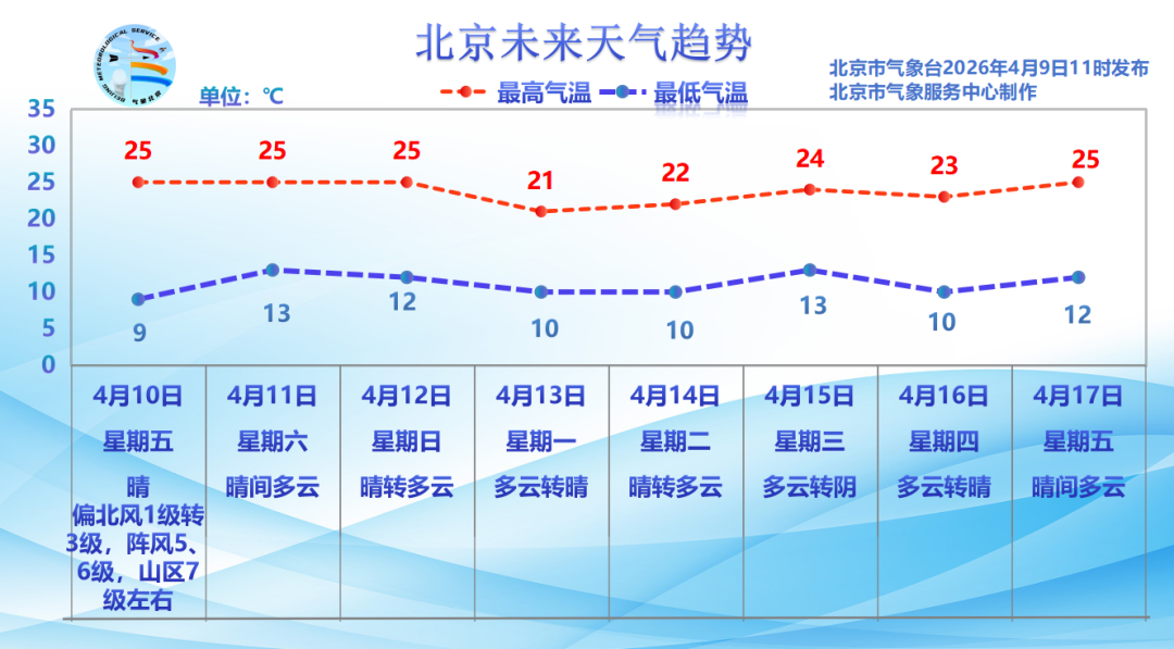 10日夜间:晴;偏北风2~3级;平原地区最低气温9℃,山区最低气温5~7℃。