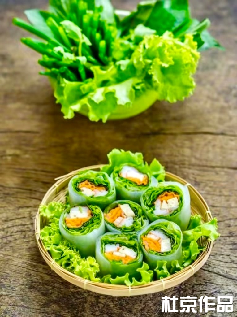 在顺化古城一家餐厅吃晚餐时,品尝着餐桌上新鲜艳丽的主食蔬菜,五颜六色,这是越南菜的一大特色。我打开味蕾,大饱口福,美食真是色香味俱全。绿色蔬菜通常有莴苣、罗勒叶、薄荷叶、紫苏叶、鱼腥草等。越南姑娘阿花告诉我,其中一些香料生菜是让你用来包卷食物,卷起来再蘸上鱼露一起品味,不仅味美爽口,而且营养丰富。