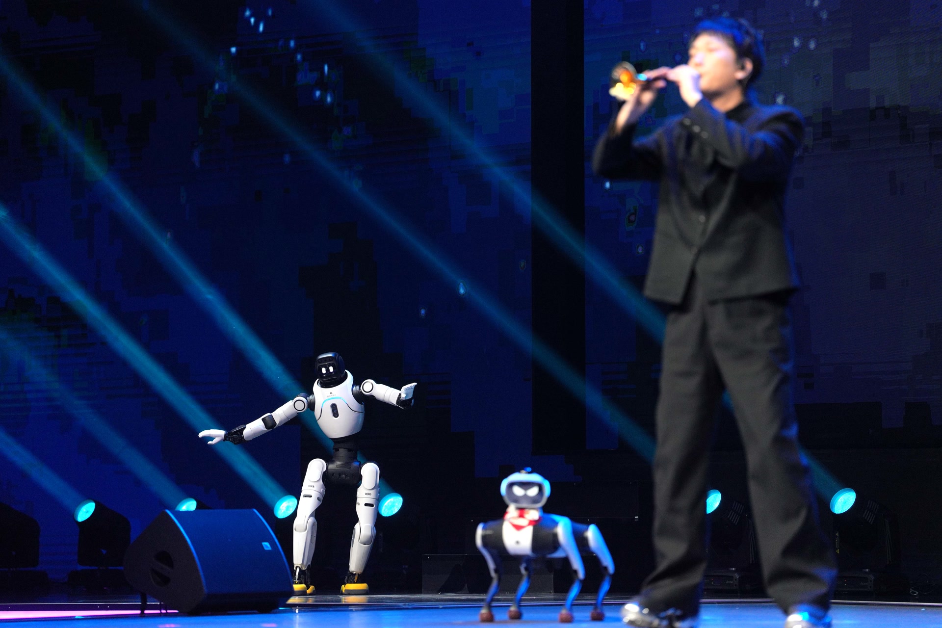 大会通过沉浸式展区与互动体验设计,让观众不仅“听得到”,更能“看得到、玩得到”。大会设计科技展区,包含飞书、网易、星海图、爱诗科技、VAST、百度、可灵AI等34个企业展位,从机器人巡游到AI互动竞技,从内容生成体验到未来体育场景展示,多元化的呈现方式让人工智能不再抽象,成为可触达的现实存在。