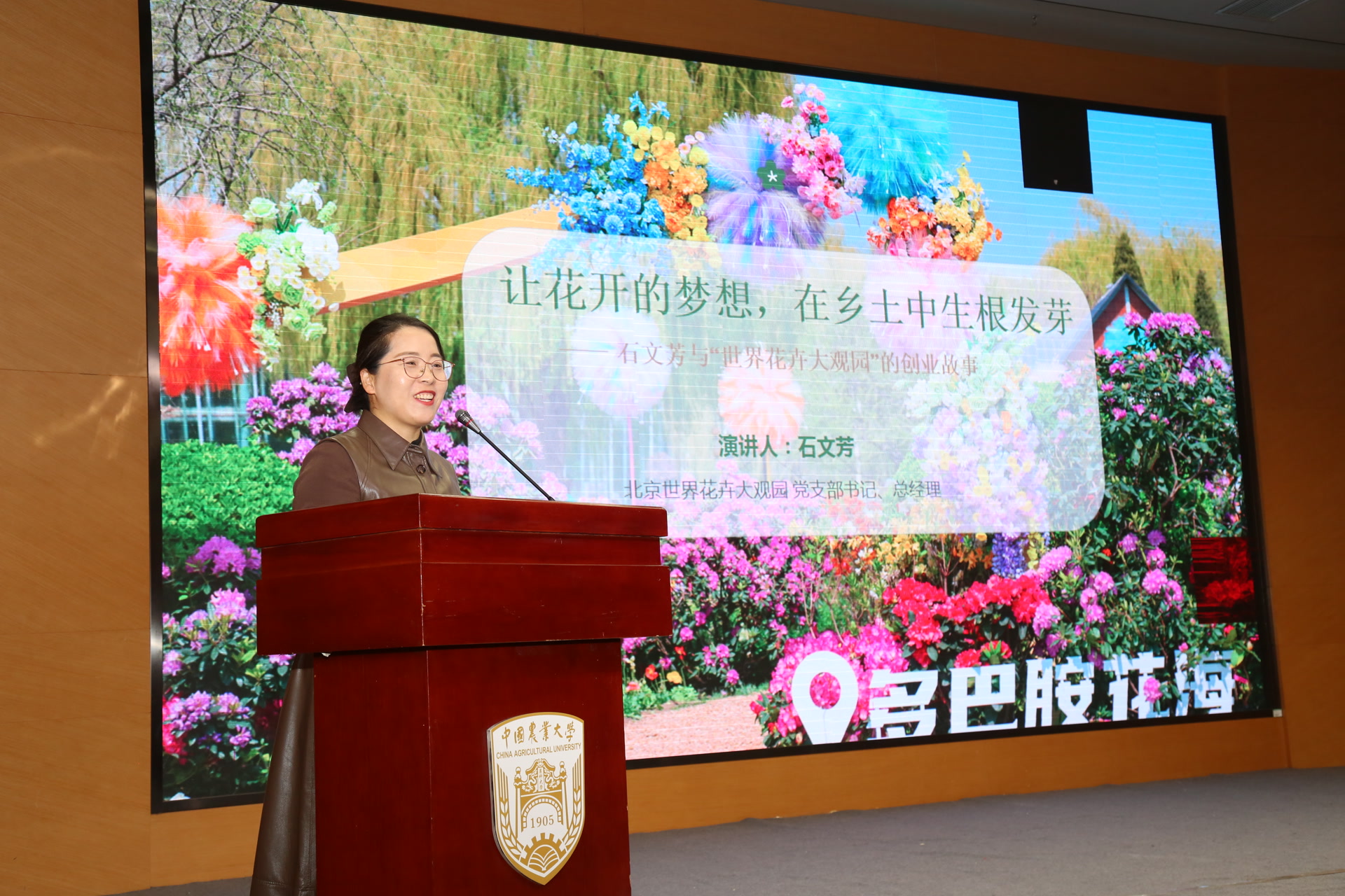 北京世界花卉大观园党支部书记、总经理石文芳,分享了从园艺专业毕业生到打造“城市休闲生活打卡地”的成长历程。