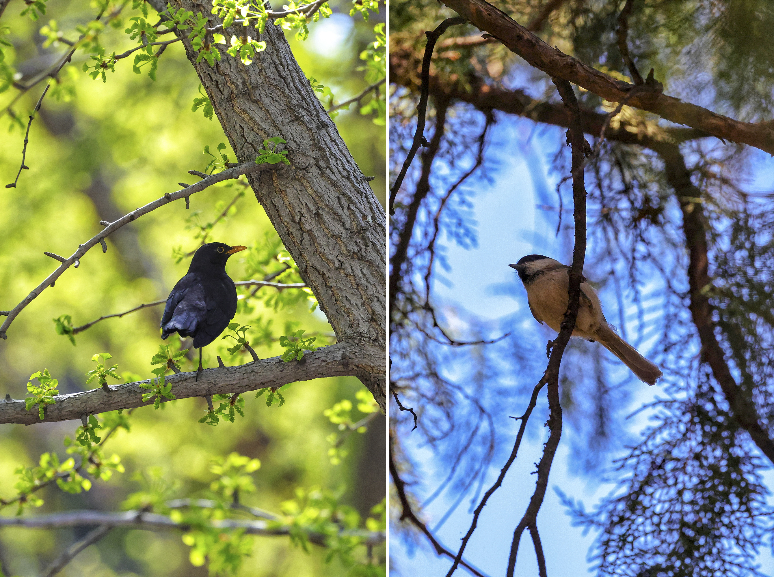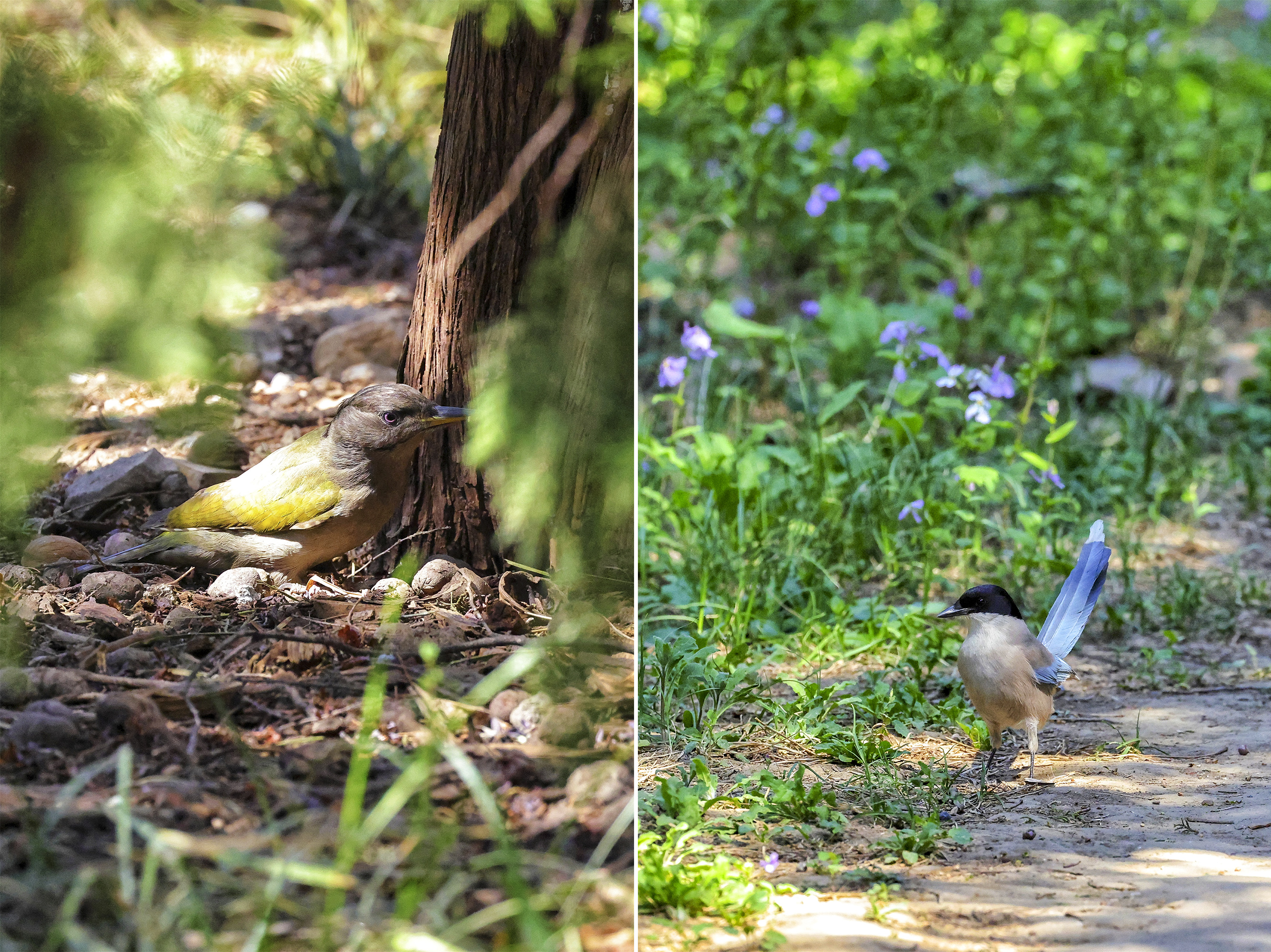 林间也不寂寞——松鼠拖着蓬松的尾巴从柏枝间跃过,鸟儿在花丛深处啁啾,一声声应和着春光。