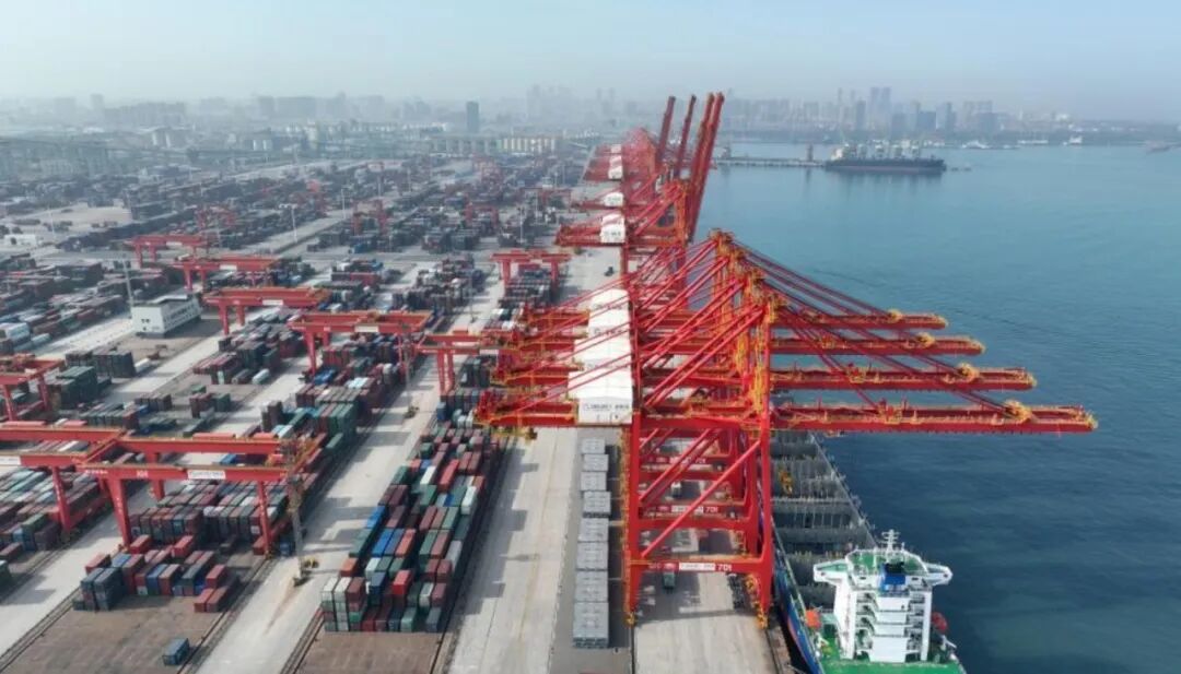图为日照港全自动化集装箱码头作业现场。(无人机图片)