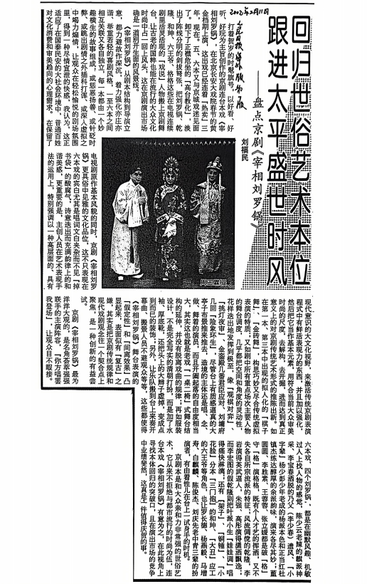 如果您珍藏着与2000年至2003年间《宰相刘罗锅》演出相关的任何物件(无论连台本戏中的哪一本),戏票、剧照、剪报、节目册、当年的海报、与主演的合影……或者您有观剧笔记、录音录像,及其他任何能勾起那段“刘罗锅”记忆的物品,都请您不吝分享。