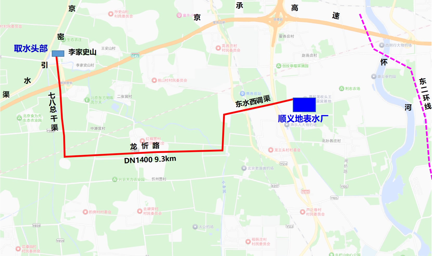 作为水厂的配套设施,输水管线是项目的关键脉络,目前为地表水厂唯一输水通道。本次新建的取水头部及地表水输水管线由北京市水利规划设计研究院负责设计。该管线西起于京密引水渠,终点直达顺义地表水厂,全长约9.3公里。
