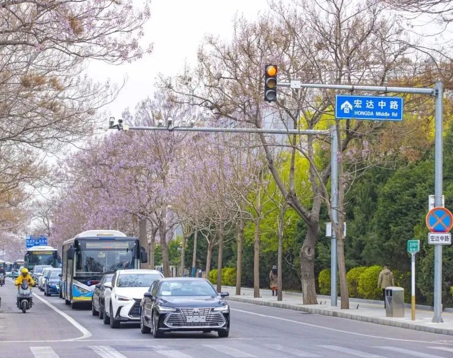 当四月的风拂过北京亦庄的街角,泡桐树便如约苏醒。沿着宏达北路、宏达中路绵延数公里,撑起一片连绵的紫色穹顶,北京亦庄瞬时变为浪漫花海。