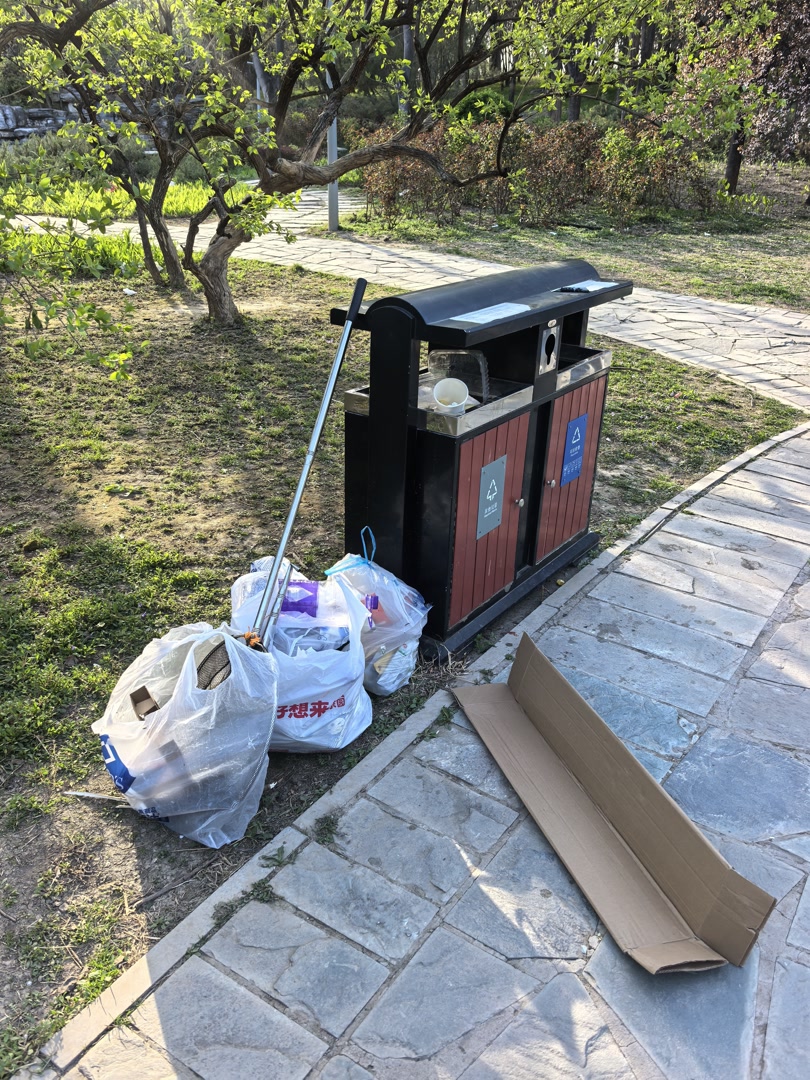 记者在公园里探访一圈发现,不少垃圾桶都被塞得满满当当,桶边的地面还堆着各式各样的垃圾。其中一处垃圾桶,野餐垫被卷成一团,强行塞进垃圾桶,但由于垫子太大,一大半都露在外面。“这个垃圾桶的口太小了,上面还有盖子挡着,根本塞不进去。”不少游客建议,公园管理方及时清理垃圾,并在露营高峰期临时增设大型垃圾桶,让大家扔垃圾更方便。