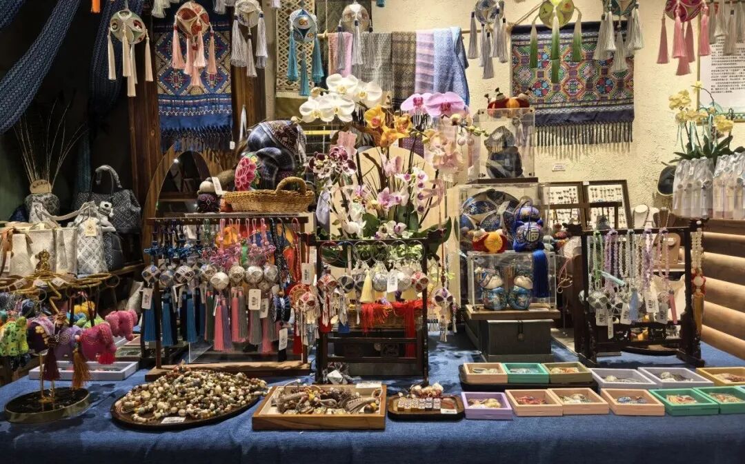 绣球变身的挂饰、铜鼓纹样的丝巾、