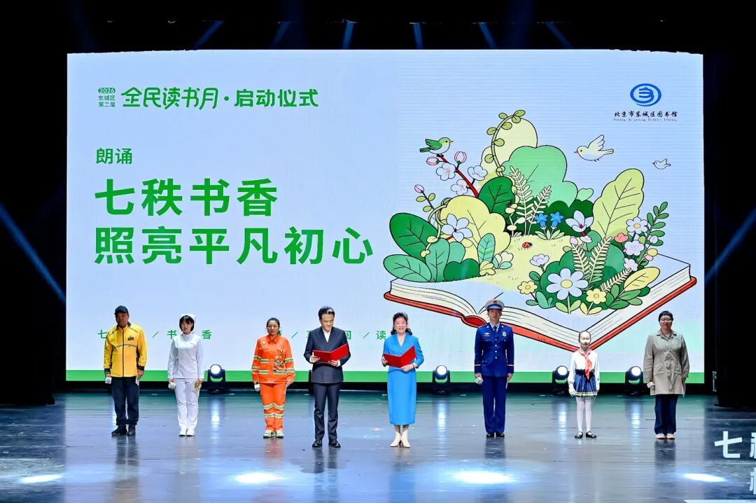 伴随着府学胡同小学学生用清澈嘹亮的歌声演唱《生长吧》,启动仪式拉开序幕。随后,一级演员杜宁林、张秋歌携手消防员、外卖小哥、医护人员等各界代表,以饱含深情的语调朗诵《七秩书香,照亮平凡初心》。不同职业、不同年龄的朗读者以书为媒、以声传情,用真挚的表达,诠释着阅读赋予普通人的精神力量,传递着全民阅读的温度与力量。