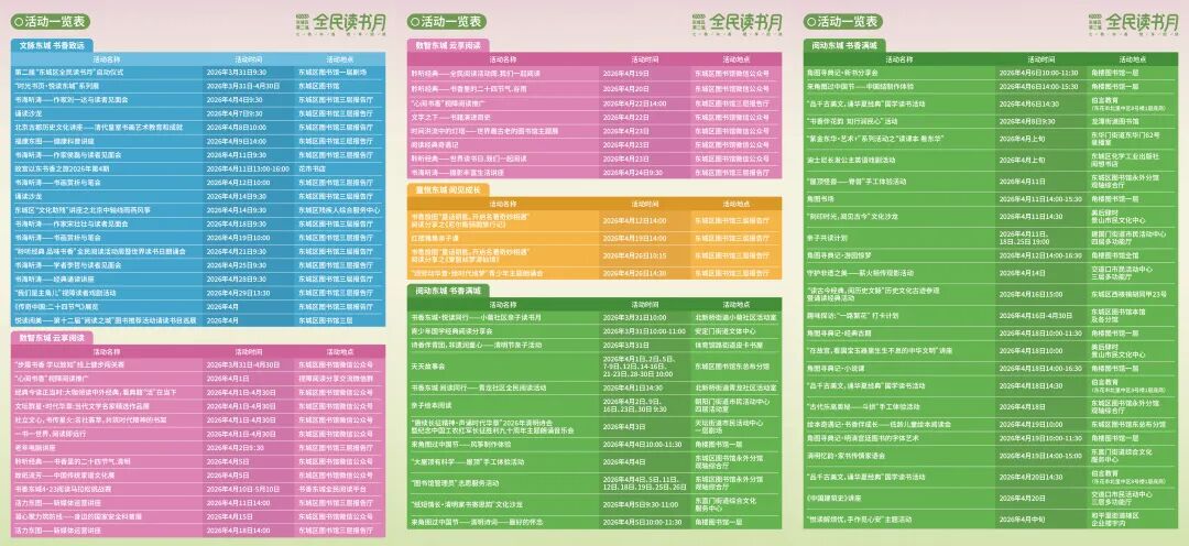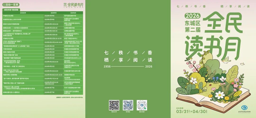 作为本届读书月的互动亮点,“一路繁花,阅见春光”专属打卡路线活动将于4月16日至30日举行。活动联动东城区图书馆总分馆体系,以“阅读+打卡”为核心形式,精心打造贯穿总馆与各分馆的特色阅读路线,引导读者走出家门,发现身边图书馆的别样之美,在行走中感受书香氛围,让阅读成为春日里最动人的风景。