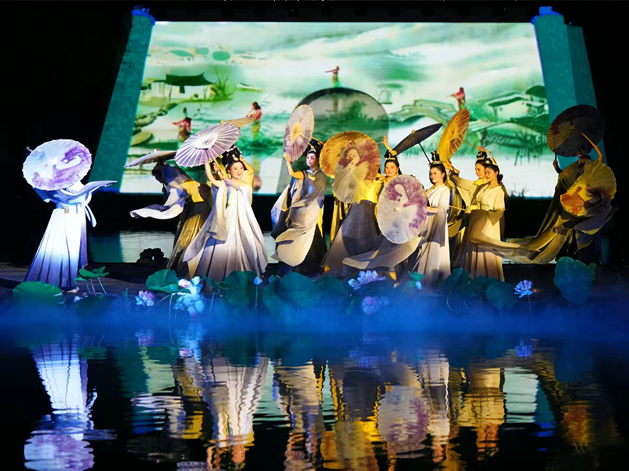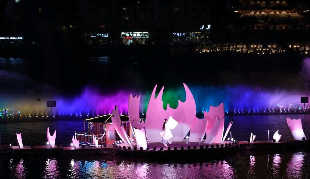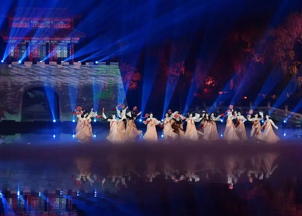 全息投影技术让黄河水仿佛从千年前奔涌而来,光影交织间,祖源传说、牡丹传奇、水浒豪情一一上演,本土非遗演艺、硬核武术、高难度杂技全安排上!国风与科技的碰撞,直接把曹州千年风华演活了,现场看真的会起鸡皮疙瘩!