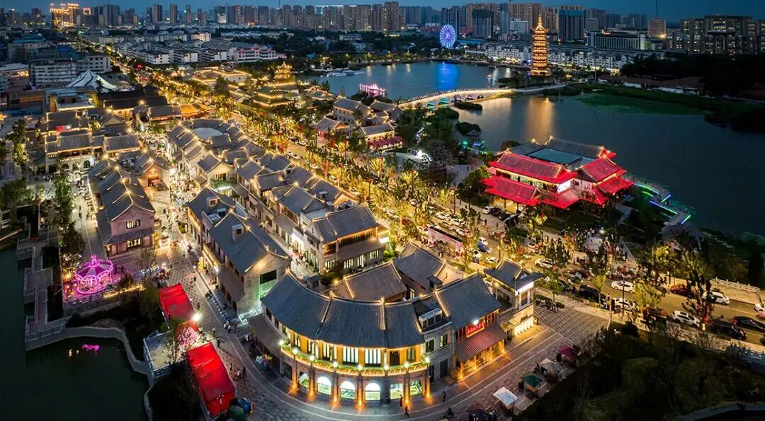 老城曹州最绝的是它的水系布局,依水而建,波光粼粼,白天是温婉的水乡,晚上直接变身璀璨不夜城。