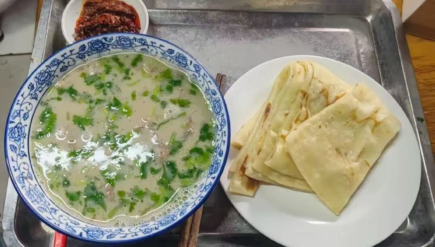 入口的第一感觉是“厚”,紧接着是羊肉特有的鲜香在舌尖炸裂,鲜而不膻、香而不腻,再配上一张油饼,一碗下肚,瞬间五脏六腑都熨帖了。