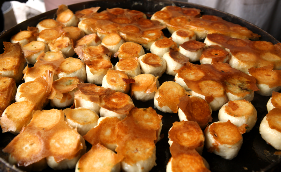半煎半蒸的“水火交融”,让包子底部结出一层薄如蝉翼的“饹馇”,咬下去“咔嚓”作响,面皮的软、馅料的鲜、脆底的香在嘴里层层绽放,让你从嘴里美到心里!