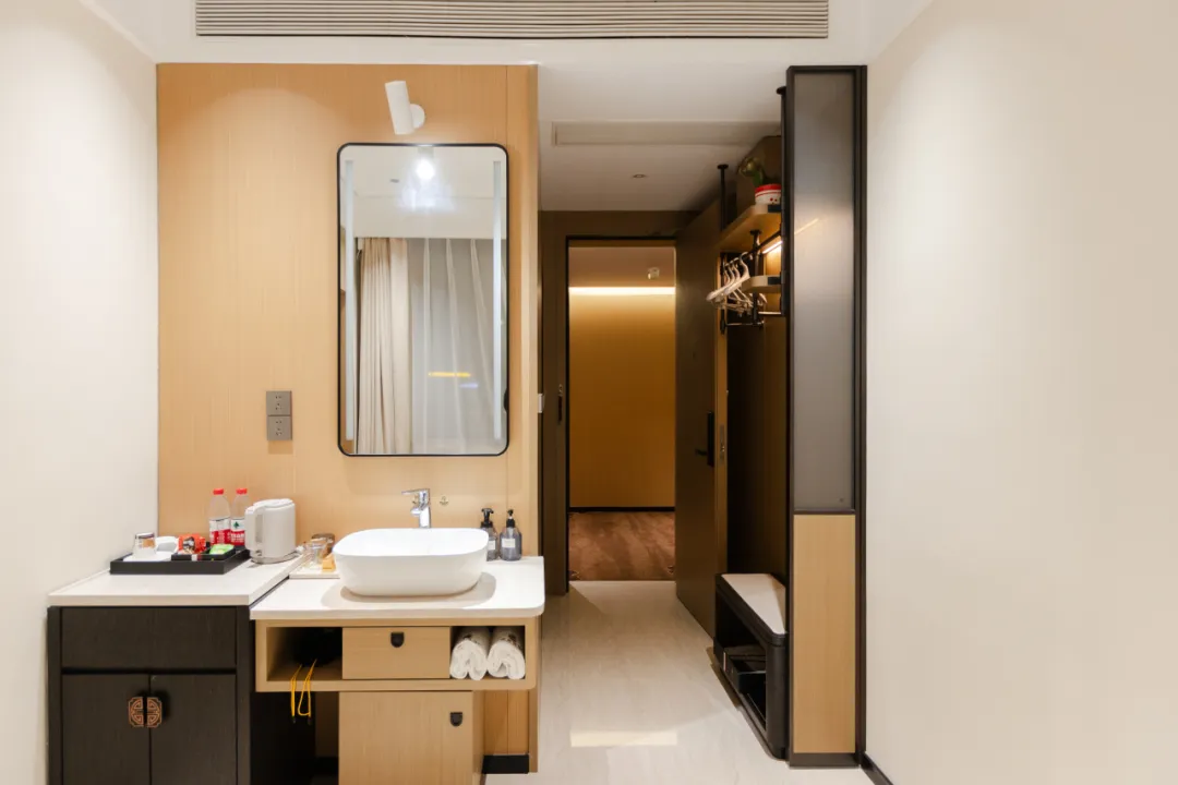 酒店客房设计简约又明朗,标配NASA航天材料0压床垫,太空记忆棉会跟着身形缓缓回弹。
